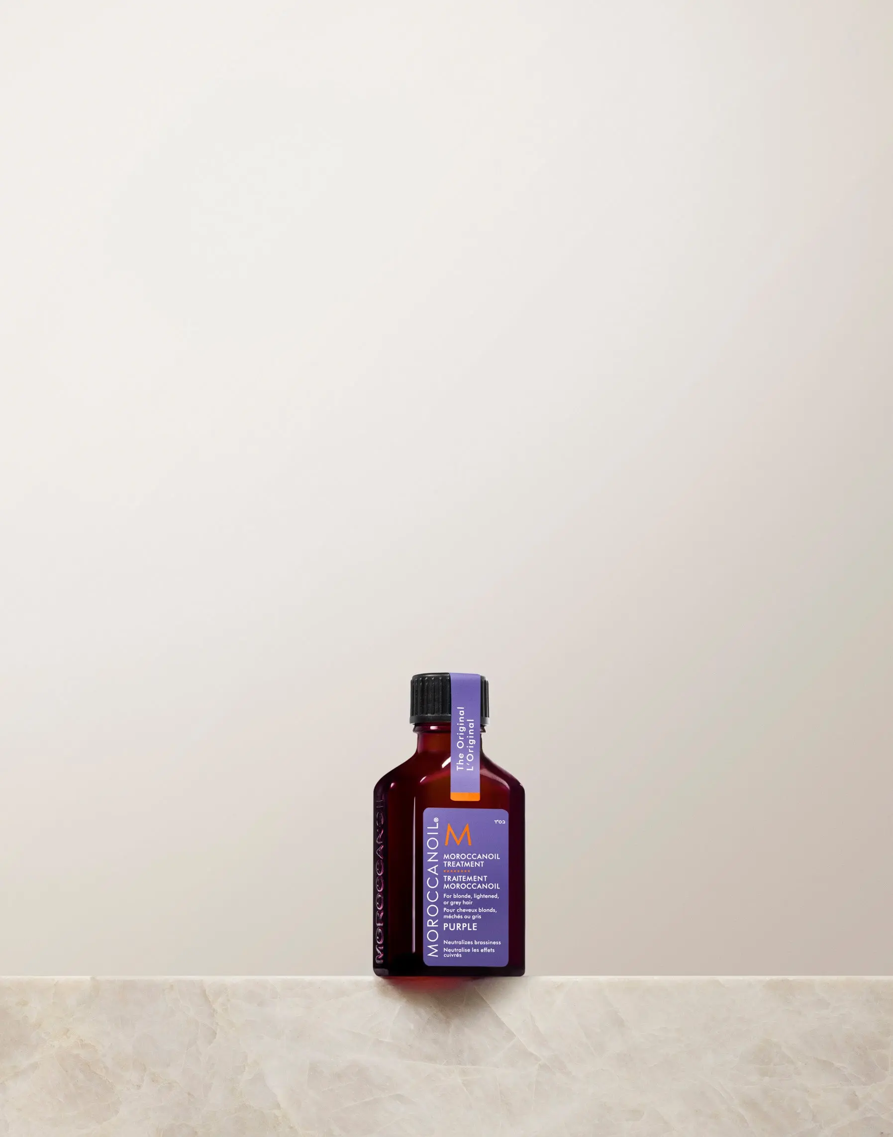 Complete with both styling and conditioning benefits, Moroccanoil Treatment Purple is a must in all styling and salon services—a single product that counteracts unwanted brassy hues over time, instantly restoring vibrancy and radiance, while creating long-lasting smoothness, increasing manageability, speeding up blow-dry time, and boosting shine.