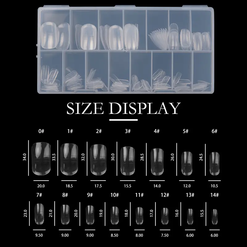 Morovan Double toe nail molds, 150 pieces, 15 sizes, reusable full-coverage molds for polyester extension gel