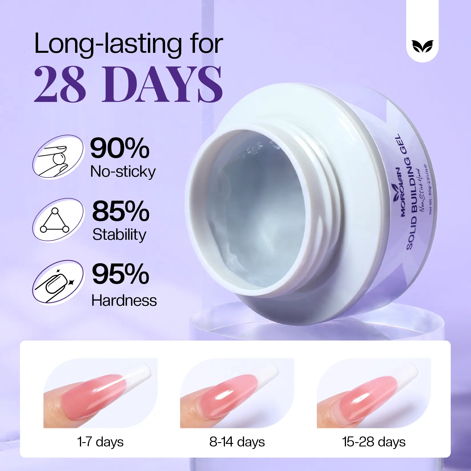 HEALTHY MATERIALS AND SERVICES: made from natural resins and healthy ingredients, this low odour nail gel is safe to use. It is tough, strong, transparent, medium thickness, not easy to turn yellow and not easy to break.