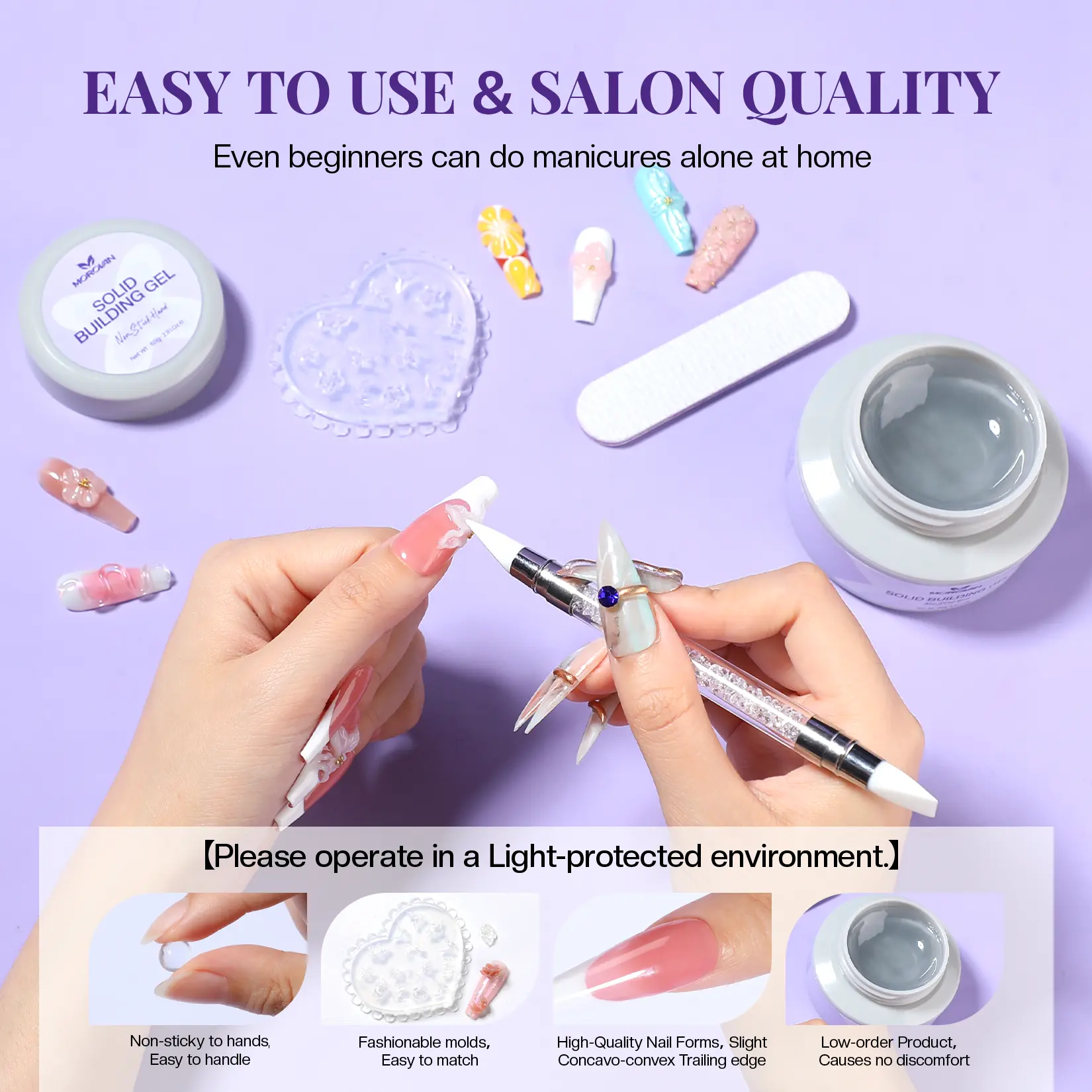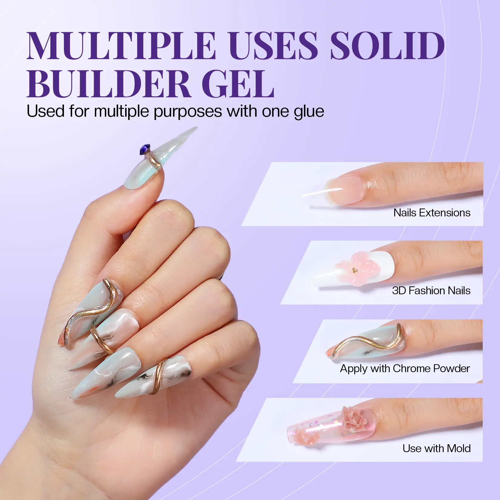 SOLID BUILDING GEL: This upgraded building gel can be used as nail extension gel with soft texture, non-flowing and non-sticky. 3D STRUCTURING GEL MANICURE: You can use the silicone moulds and pens to create 3D sculpting manicure or you can mix it with mirrored powder, sculpt it yourself and apply it to your nails. Have fun making nail art