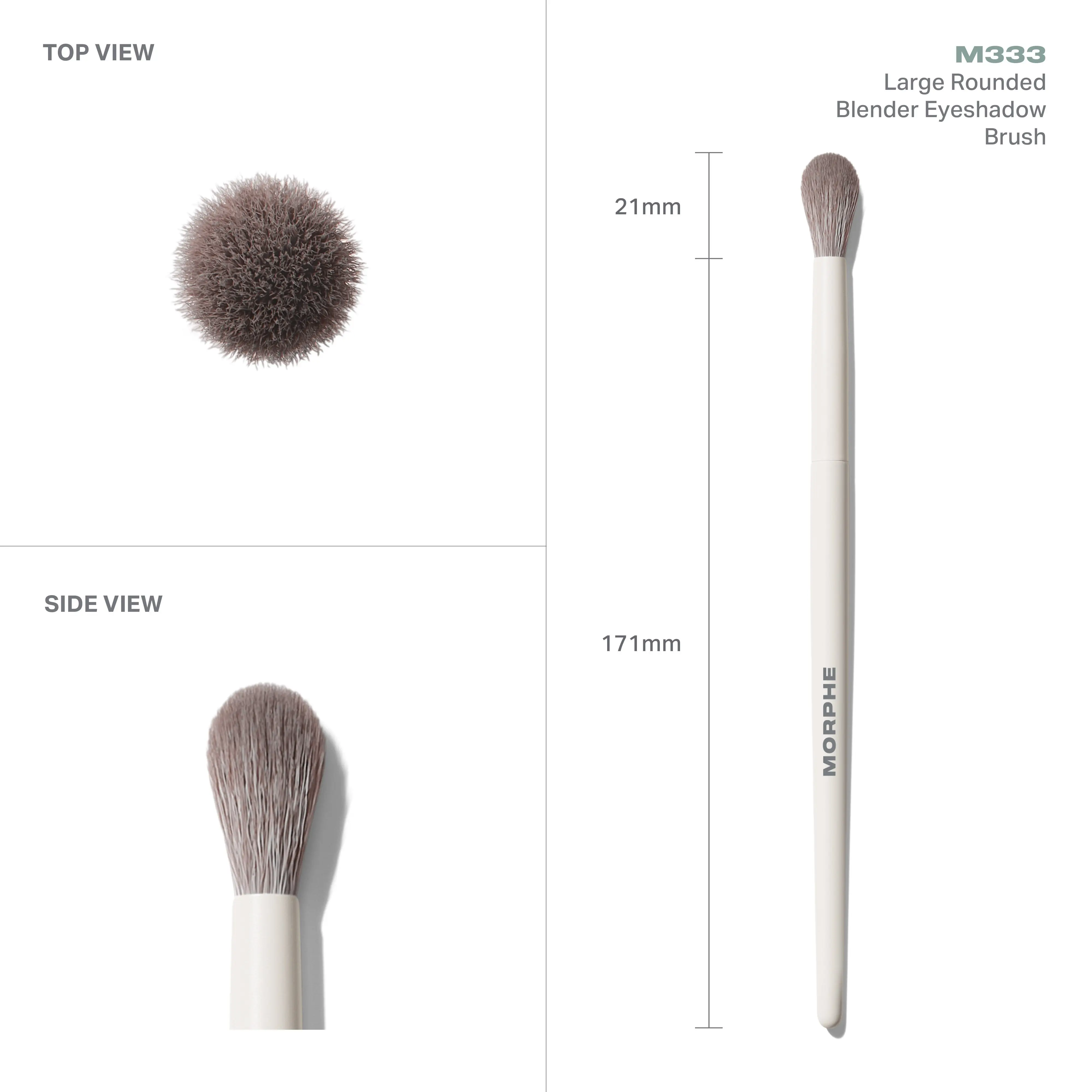 The M333 Large Rounded Blender Eyeshadow Brush is your transition blender. Use it on your lids and in your creases with back-and-forth sweeping motions to effortlessly diffuse color for seamless effects.