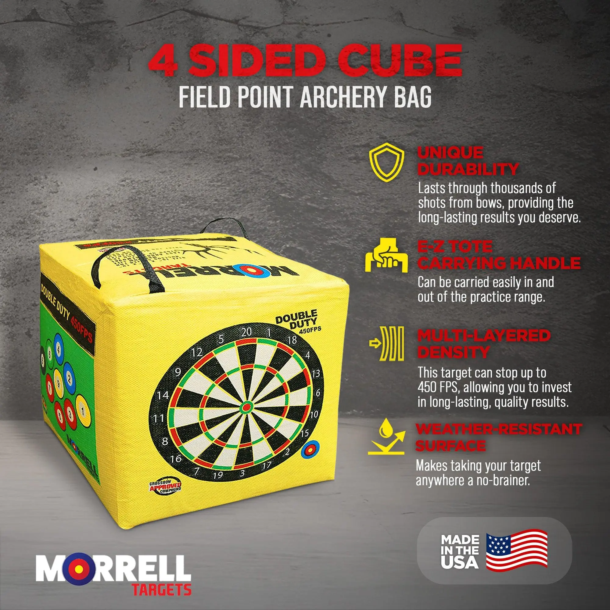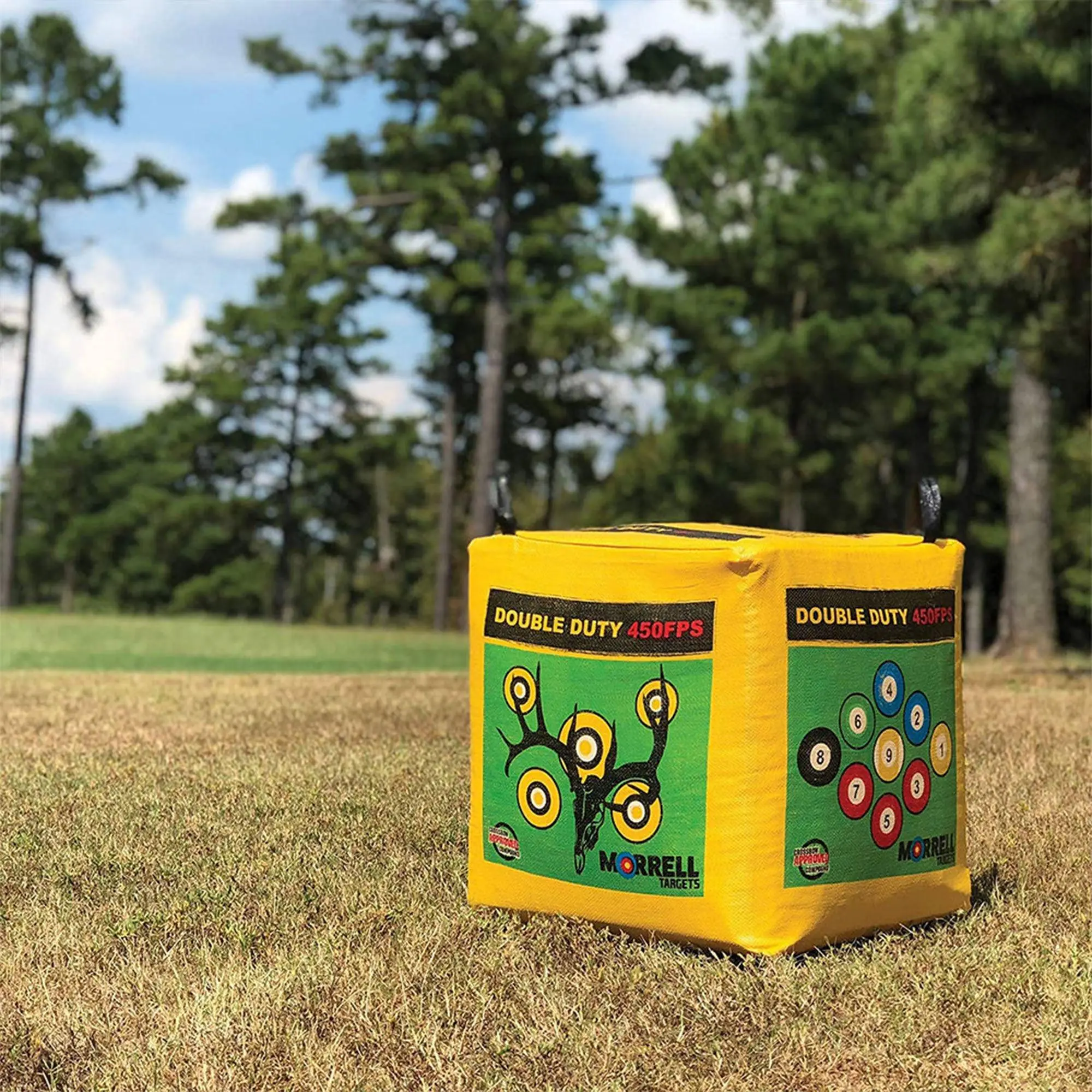 Practices make perfect, and with the Morrell Double Duty 4-Sided Cube Field Point Archery Bag Targets, your outdoor adventures just got a whole lot more exciting. These archery targets are perfect for anyone looking to upgrade their gear and find more reasons to get outside. With the versatility of these targets, you can take full advantage of all four sides of the cubes, which feature five traditional bullseyes, nine-ball bullseyes, dartboard games, and deer vitals. Whether you’re at the range, in your backyard, or on the go, these targets are designed with convenience in mind, thanks to the E-Z carry handles that make transportation a breeze.Specifically built for crossbows, compound bows, and air bows, these targets can withstand speeds of up to 450 FPS, ensuring you’re investing in a durable and high-quality product. The easy arrow removal feature adds an extra layer of convenience, allowing you to spend more time practicing and less time retrieving your arrows. These targets are a great way to get your whole family involved in the fun, making archery a shared experience.Get the practices you need and take the first steps toward becoming archery pros with the Morrell Double Duty 4-Sided Cube Field Point Archery Bag Targets. Grab your bows and arrows, and let the training begin!