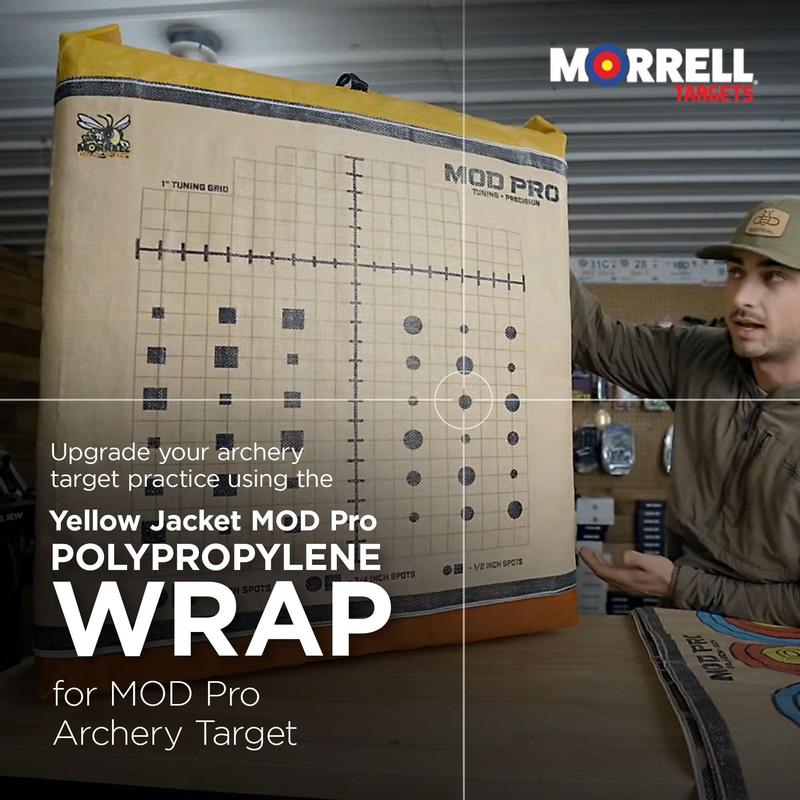 Upgrade your archery target practice using the Morrell Yellow Jacket MOD Pro Polypropylene Wrap for MOD Pro Archery Target. Crafted with precision and designed for convenience, these target accessories are a must-have for every archer.Engineered to endure rigorous use, these Yellow Jacket MOD Pro archery targets are constructed with durable polypropylene wrap and are built to withstand countless shots, ensuring long-lasting performance. Measuring 42 by 26 inches, these target accessories provide ample space for honing your accuracy. Equipped with hook-and-loop attachments, these shooting accessories seamlessly integrate with these archery targets, offering a quick and easy setup process. Additionally, grommets are included for individual hanging, allowing versatile placement options apart from the main target.Featuring precision bullseyes adorned with squares and circles of 3 different sizes, these compound bow accessories caters to all sight pins, facilitating precise aiming and target acquisition. Fine-tuning your shots is a breeze with the tuning cross, complete with a 1-inch grid that enables easy shot correction, ensuring that you achieve optimal accuracy with every draw.Experience the next level of archery target practice with the Morrell Yellow Jacket MOD Pro, where precision meets durability for an unparalleled shooting experience.