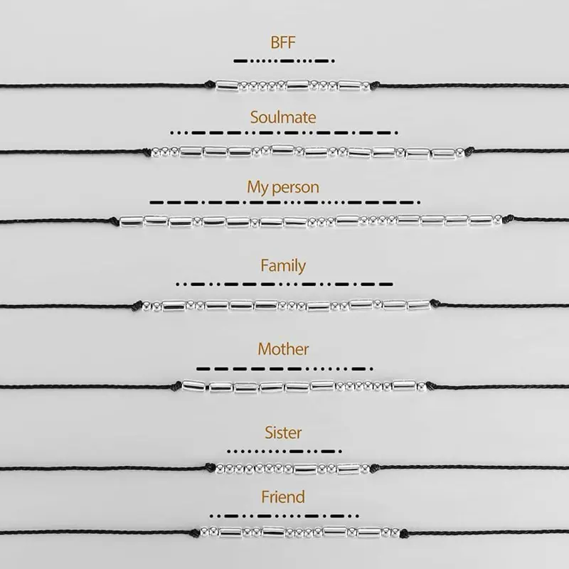 This Morse Code Necklace & Bracelet set is a stylish and versatile accessory. Perfect for anyone who appreciates unique designs. 🌟