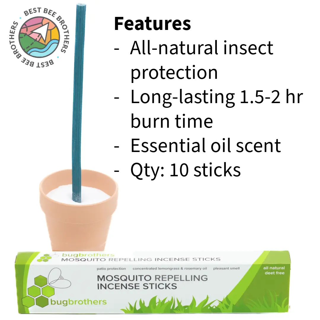 Protect your outdoor living areas and keep mosquitoes at bay for hours at a time with our aromatic, natural essential oil scented incense sticks. At Best Bee Brothers, we believe in holistic protection from mosquitoes.