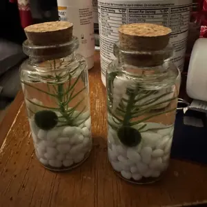 Love these little balls. So adorable, easy to manage. I don't exactly have a green thumb. So here's hoping I don't mess up and kill them. I just changed the water recently since our tap is hard water. I did what it said and left it out for 24 hours. But bought box spring water just in case. So Cute!