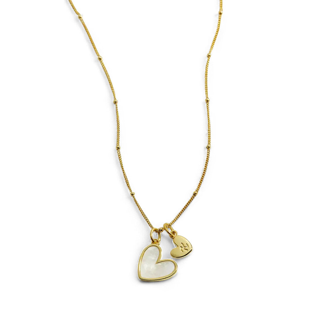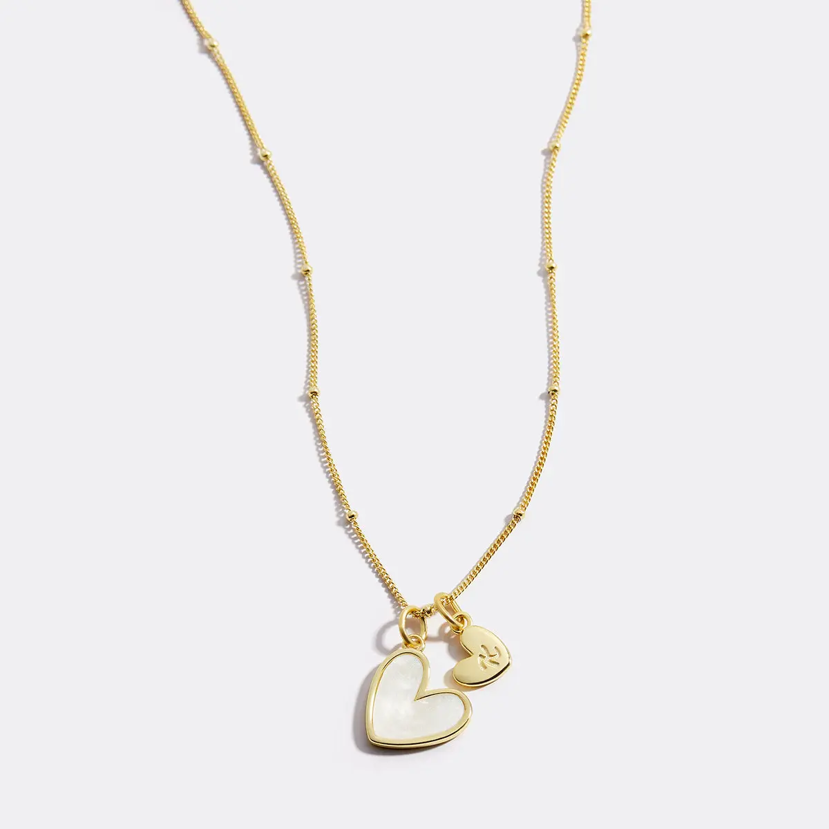 Mint & Lily's Mother of Pearl Initial Heart Necklace combines the iridescent charm of mother of pearl with a personalized touch. Ideal for gifting or as a special addition to your own jewelry collection, this necklace is a timeless expression of love and individuality.