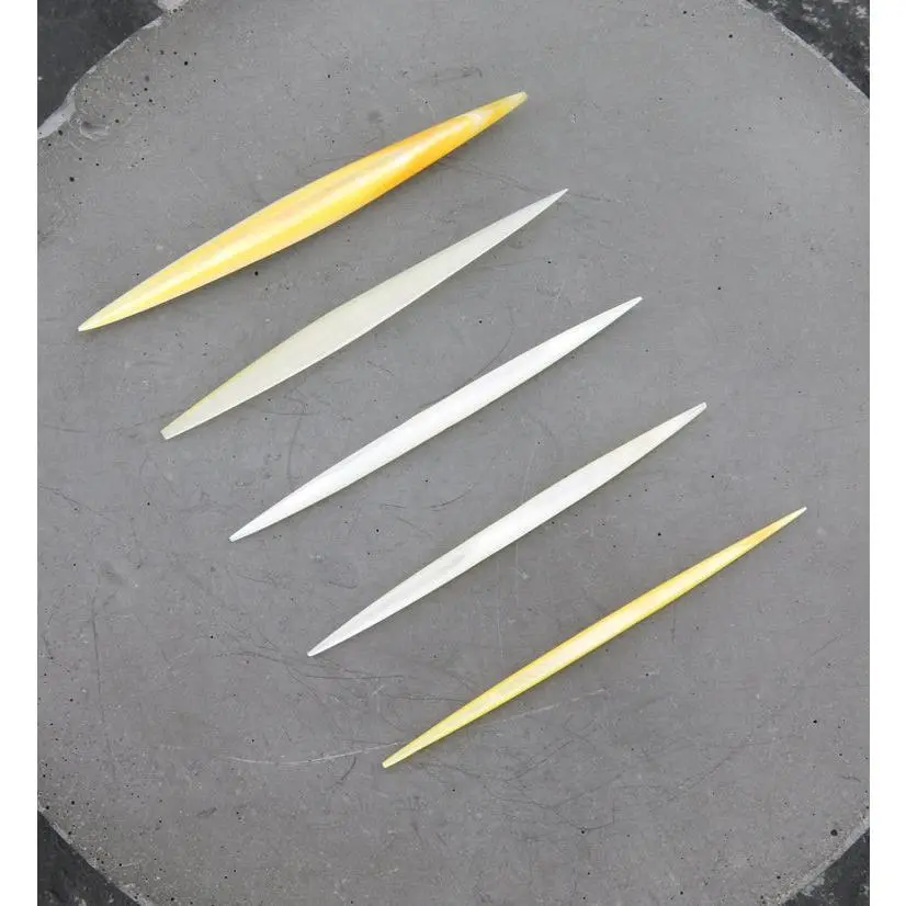 Beautiful septum spikes hand-crafted from natural MOP shell. Available in 14G to 8G sizes with a length of approximately 40mm (1 & 9/16") and in 6G at 45mm (1 & 3/4"). Sold individually (1pc).