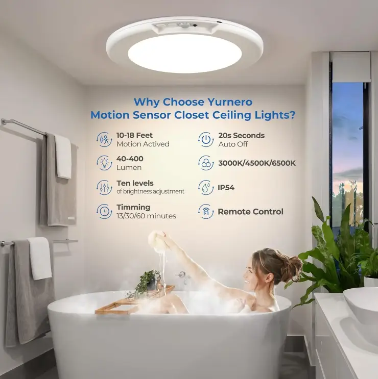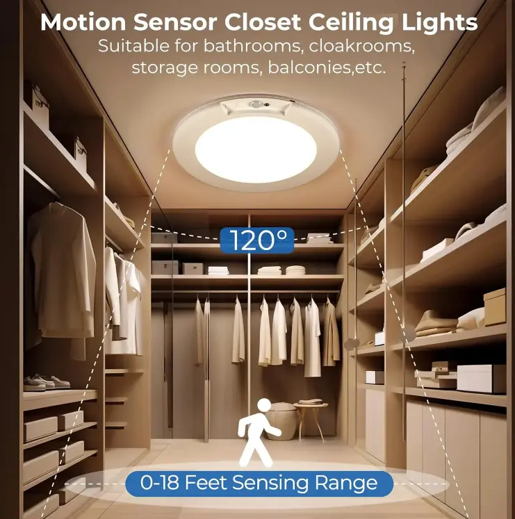 Rechargeable Motion Sensor Ceiling Light Long Battery Life This light boasts a 10000mAh battery. One charge provides 7-10 hours in stay-on mode and 30-60 days in motion sensor mode. No extra batteries needed. Brightness and frequency affect battery life. Enjoy long-lasting illumination without frequent recharging. Easy Installation Magnetic design allows for easy installation without drilling holes. It avoids wall damage, making it perfect for dark areas like sheds and hallways. No hard wiring is required, ensuring convenience and flexibility. Ideal for locations without electricity. Versatile Modes Operates in Sensor Mode and Stay On Mode. In Sensor Mode, it turns on within 9-16 feet and turns off after 20 seconds. For longer stays, set it to 'ON' mode via remote control. Simple and efficient for various needs. Color Options & Controls Choose from 3000K warm white, 4000K natural light, and 6000K cool white. Adjust brightness with 10 levels using the remote or buttons. Timer function allows automatic switching off after 15/30/60 minutes. Meet all room lighting needs with versatile color options.