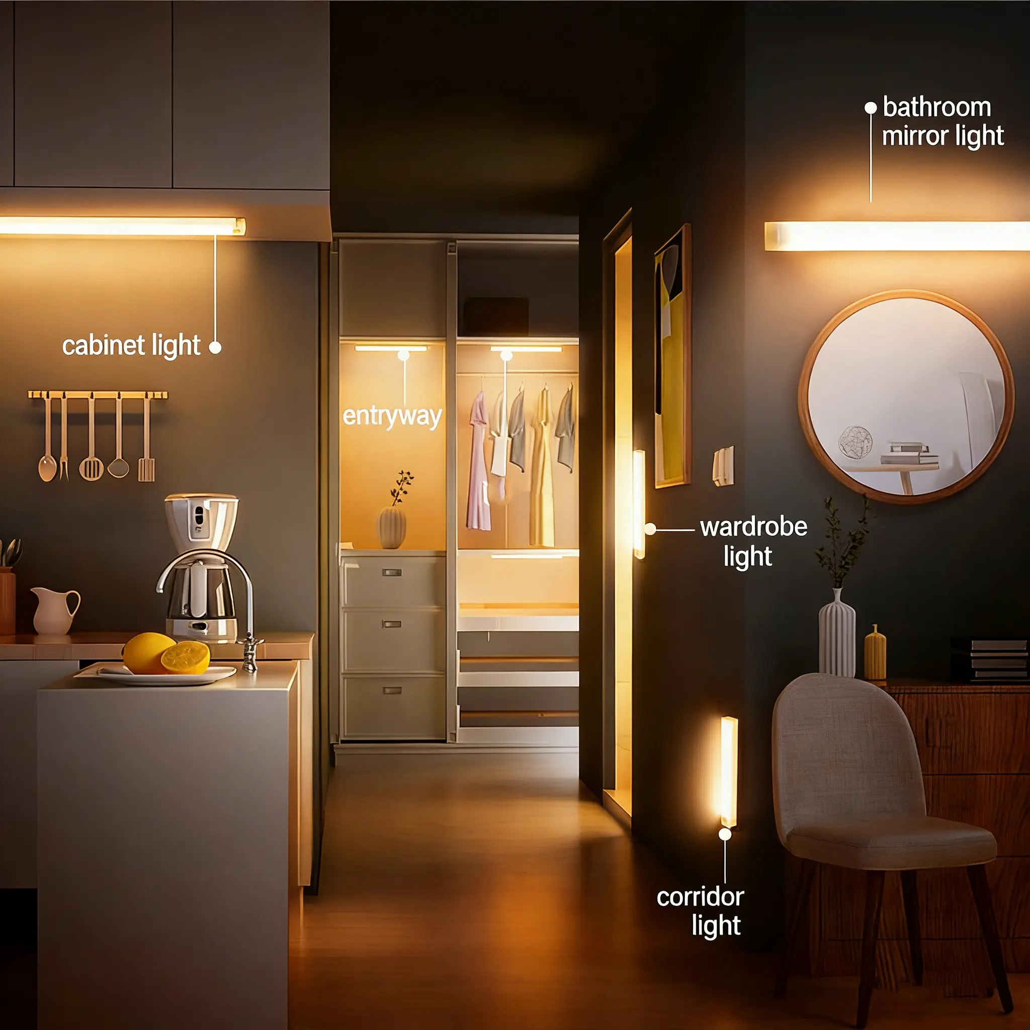 Auto on when you walk by, hands-free lighting