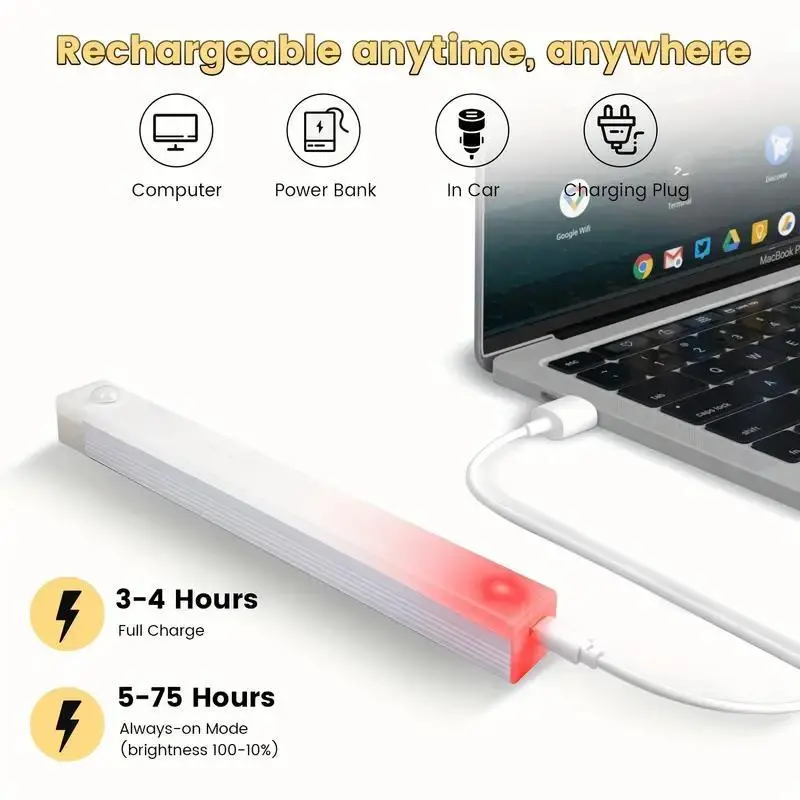 No Wiring Needed Under Cabinet Lights 6 Pack, Motion Sensor Turns On Instantly, 11.8in Rechargeable Magnetic Stick On Lights,White Color Temps Dimmable, Perfect Under Counter Lighting for Kitchen, Stairs, Closet, Night Use