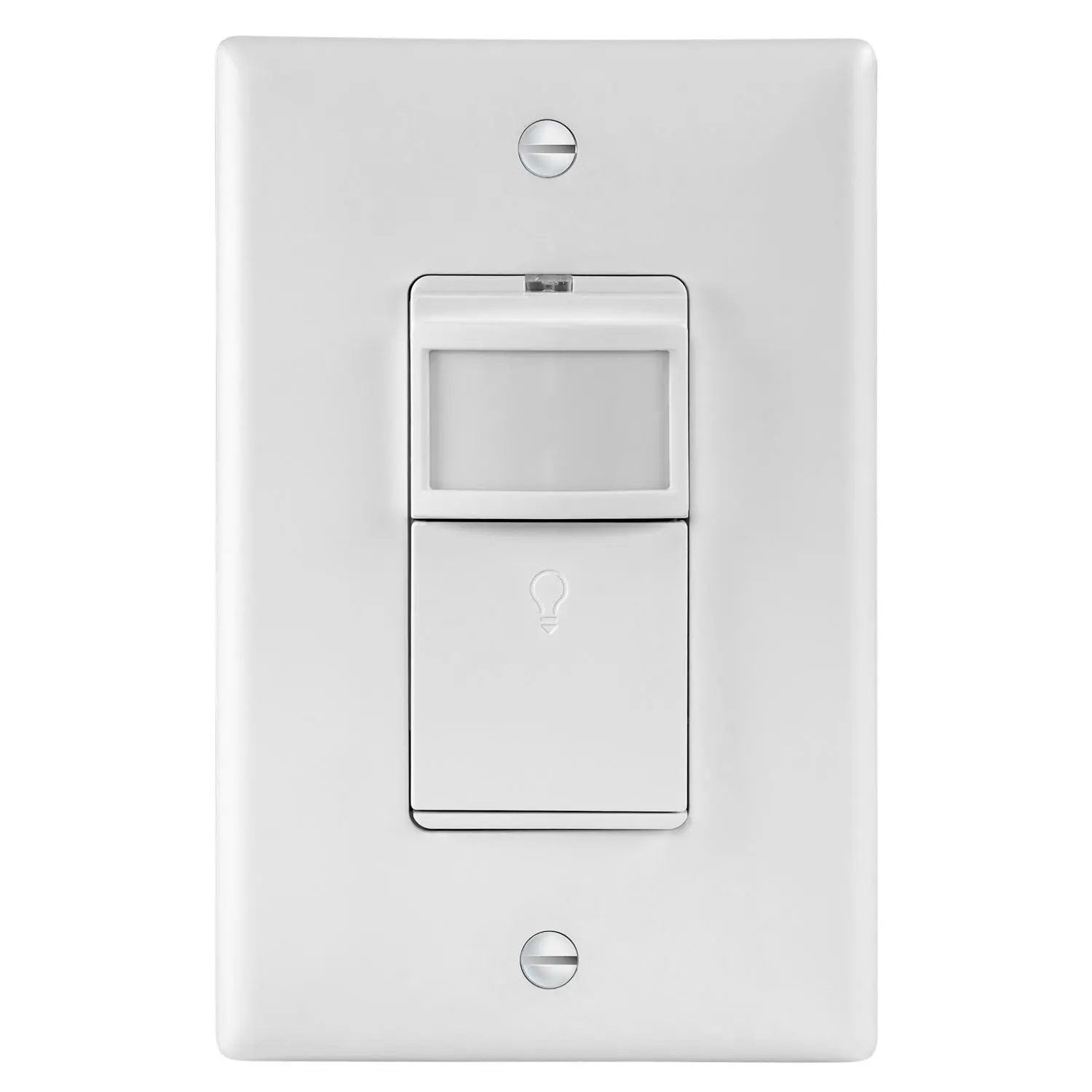 The LIDER Motion Sensor Light Switch (1-Pole) offers a smart, energy-efficient lighting solution with a sleek decorator design that blends into any modern interior, enhancing both functionality and aesthetics. PIR sensor coverage 1200 sq.ft. (up to 40in front of the sensor).