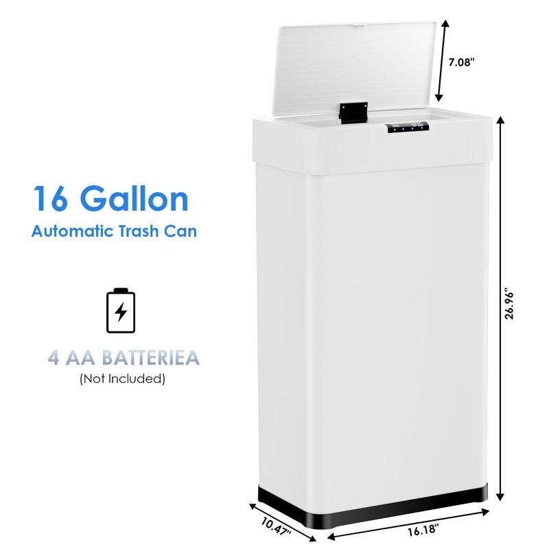 Rectangular motion sensor trash can is a touch-free, hygienic home option made of stainless steel with a brushed surface that is fingerprint-resistant. 16 gallon trash can for can easily meet your daily waste disposal needs. Widely used in kitchen, dining room, bedroom, home, office and other indoor scenes.