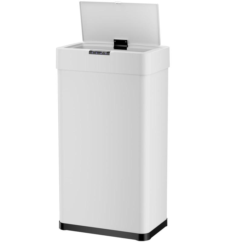 SOFT CLOSE: Touchless garbage can features auto-sensing technology and a silent closing lid, which opens and closes slowly and silently.