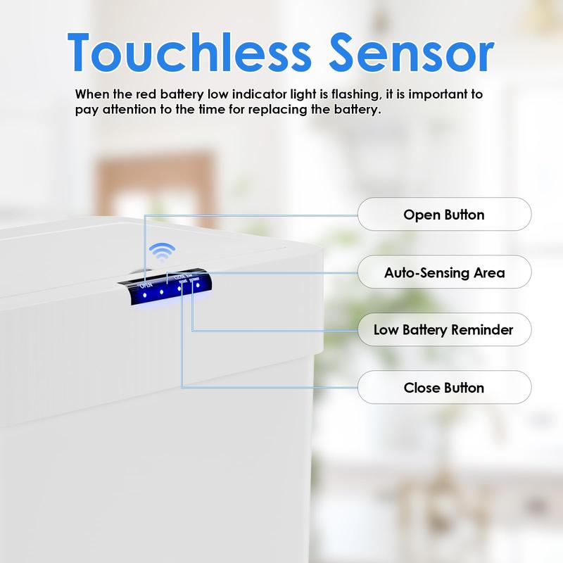SMART SENSOR: Automatic trash can has sensing area of 5.9 inches and can detect motion in just one second to open, and lid automatically closes after 9 seconds.