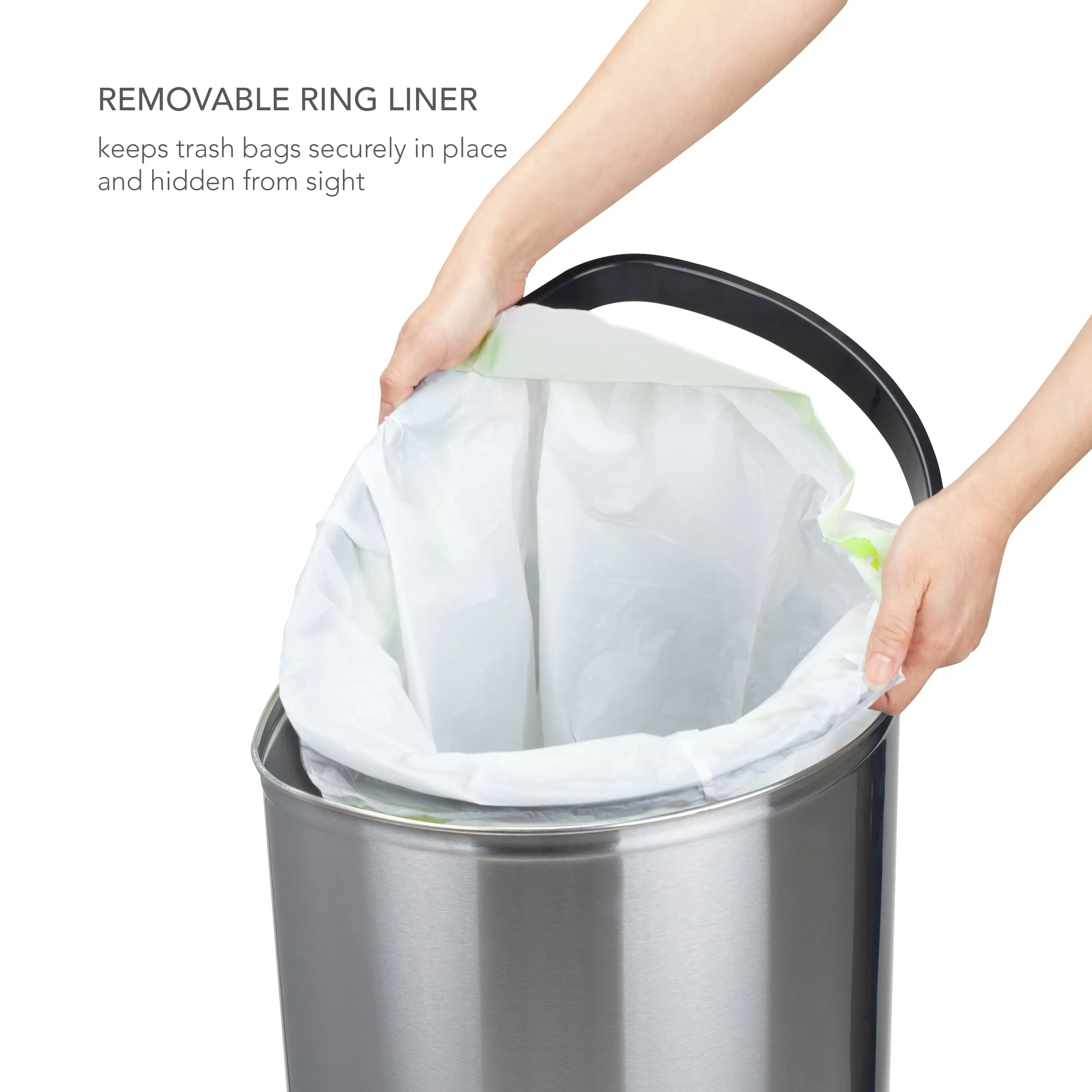 【New removable ring liner】holds trash bag sturdy in place and prevents bag from overhanging for a neat and clean appearance. Use any standard trash bags or NINESTARS custom trash bags nstb-13-30. Commercial-grade fingerprint resistant stainless steel.
