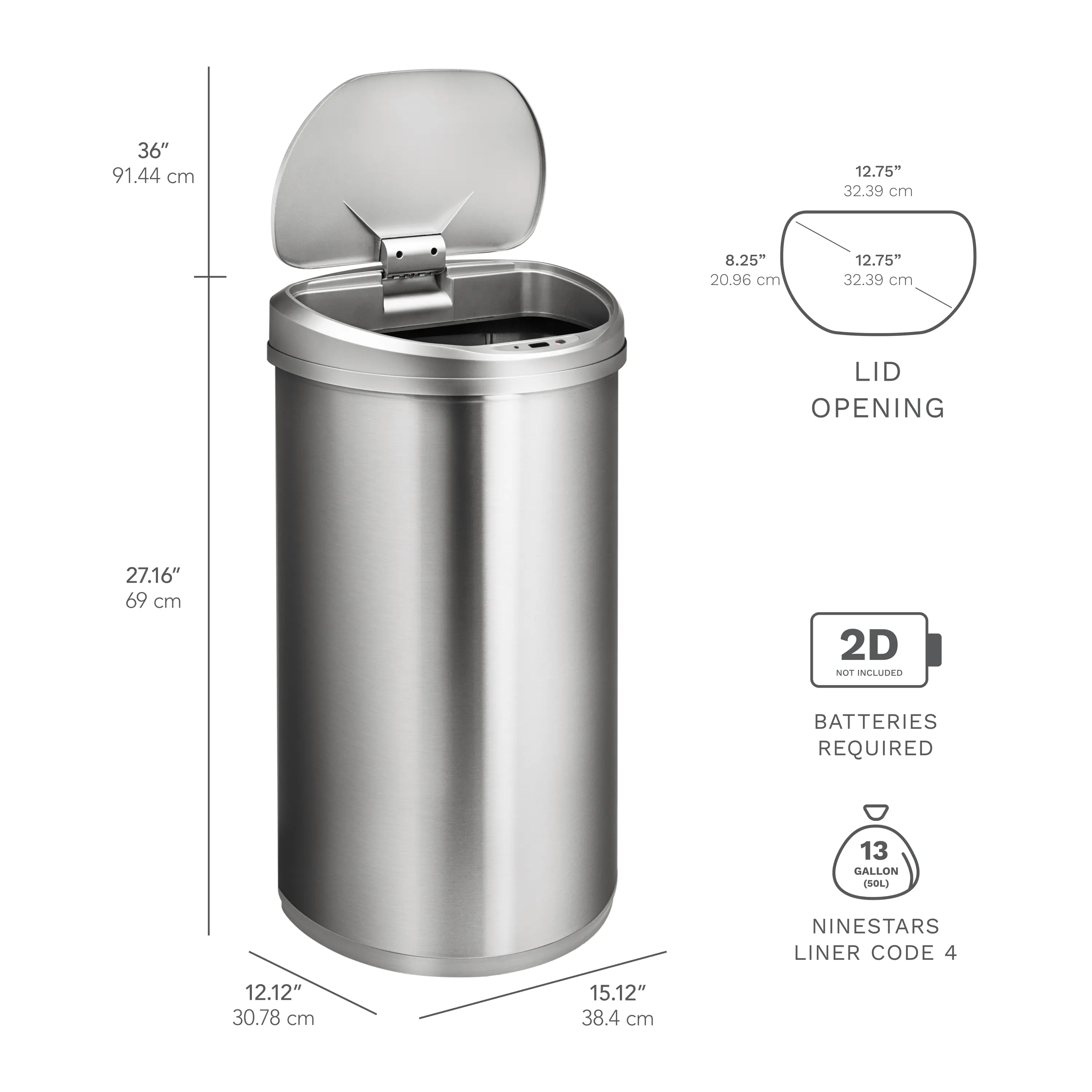 【New extra large opening】micro fitted lid keeps odors in, Requires 2 D batteries (not included), alkaline battery highly recommended for best performance.