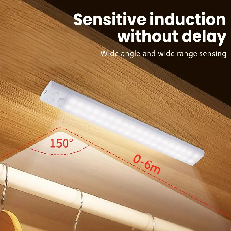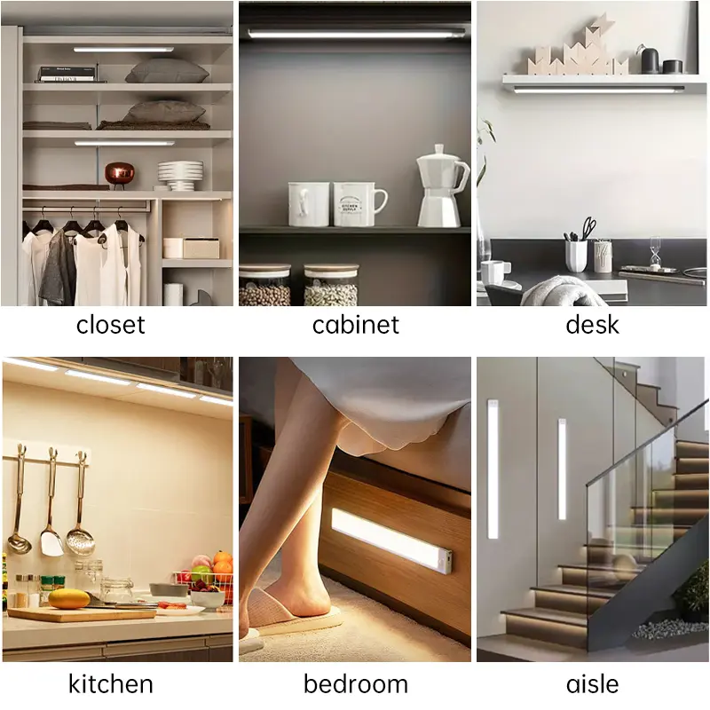 WIDE APPLICATION: Motion sensor light indoor with sensing devices illuminates every dim corners, ensuring the safety of the elderly and children at all times. Suitable for kitchen, bedroom, wardrobe, bedside, display cabinet, stairs, foyer, mirror, basement, garage, hallway, corner, etc00