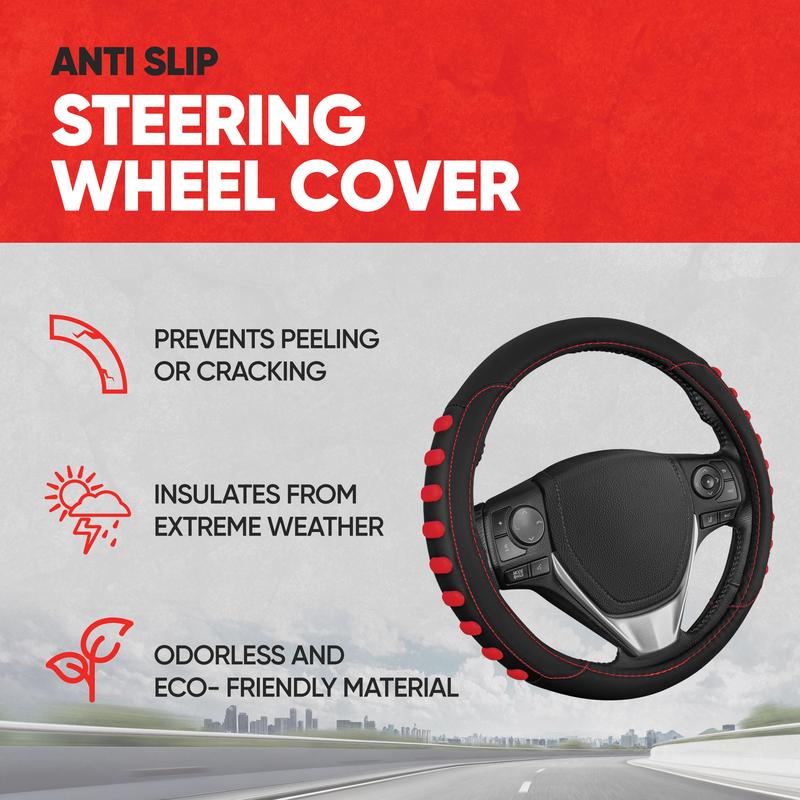 ENHANCED GRIP DESIGN – Enjoy the comfort and security of our enhanced grip design featuring multiple 'speed bumps' along the side of the cover. It provides increased control over your steering wheel.