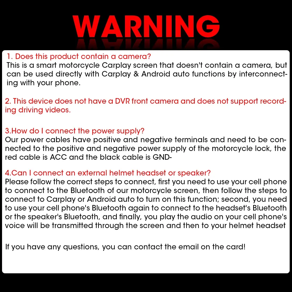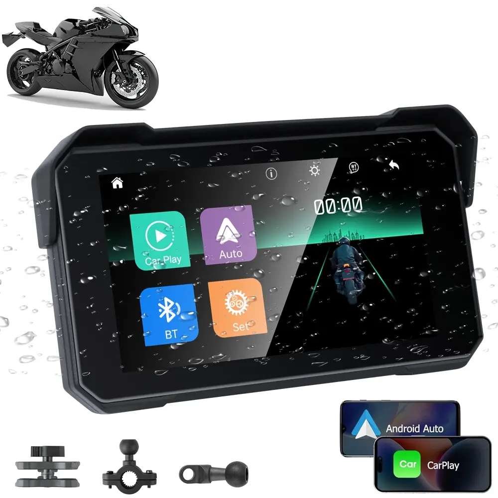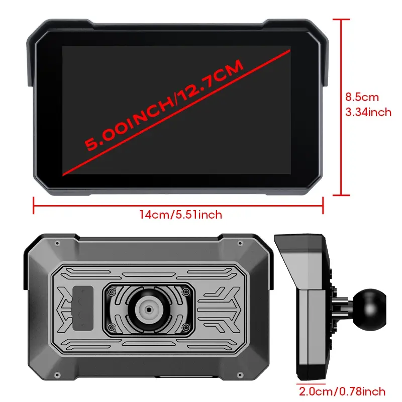 [Waterproof, Dustproof, &Quakeproof Design] The carplay screen for motorcycle of the waterproof, dustproof and shockproof design ensures that the device can work properly even in rain, dust, bumpy roads, etc. It prevents water intrusion from damaging the device, protects the device from abrasion and clogging, and ensures that the equipment can operate stably even under harsh road conditions. Motorcyclists can face all kinds of outdoor environments with more confidence.