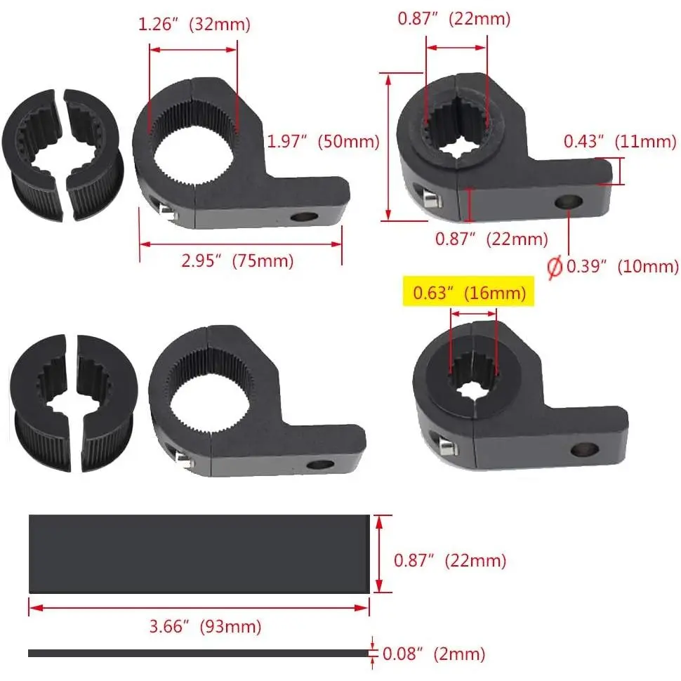 size: fit for bumper 19mm/0.75"-25mm/1"-32mm/1.25"