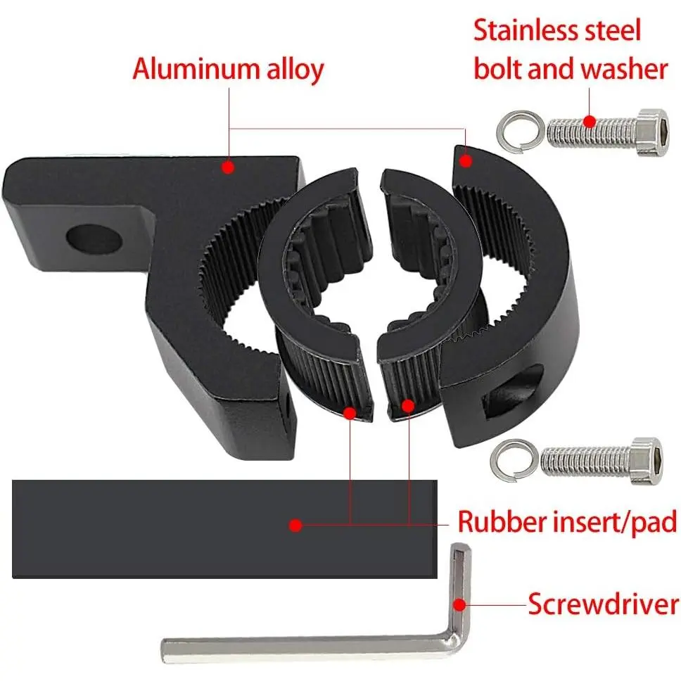 Wide applications: universal horizontal bar clamp mounting easily install the the working light on the led bar without drill any holes.works with most LED, HID, halogen spotlights/fog lights/driving lights or light barsEasy Installation: motorcycle mounting bracket ,no drill, no modification required, lamps can be installed directly.Multiple angle adjustable,Stainless steel screwAllow to add more lights on vehicle without drilling.Durable: horizontal bull bar mounting bracket is made of high quality aluminum alloy, the material is light and strong, anti-oxidation and durable.Protective effects: rubber inserts dampen driving vibration avoid scraping the surface of bull bar.Buy With Confidence: With absolutely nothing to worry about, If there is any problem with our product, please contact us and leave us message, 24 hours online service.Particular attention: Silicone pads are soft and have a certain degree of elasticity,and they will be compressed during installation. The diameterof the protective bar should be 0.1 inches larger than themeasured size,lt can be fixed more firmly.