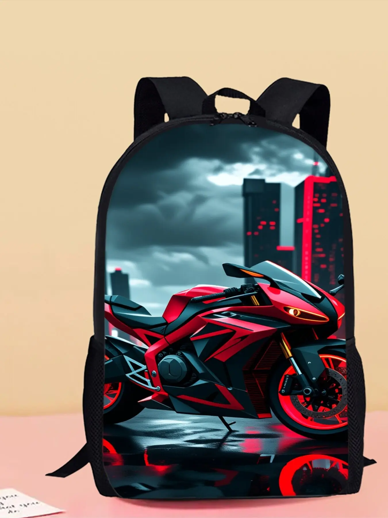 【Unique Motorcycle Design】: Features a striking motorcycle pattern print, making it stand out among regular backpacks.