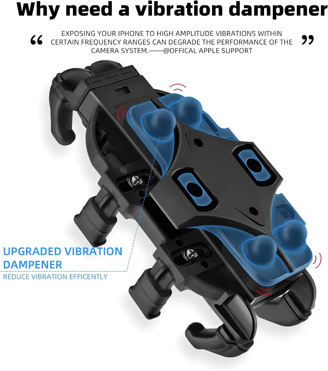 ·【Upgraded Shock Absorbing】New-generation shock absorption technology gifts it higher shock absorbing performance for protect the OIS camera on phones. There are 4 shock-absorbing rubber columns designed on this phone mount to reduce the shock from all directions produced during cycling, which also makes phones more stable