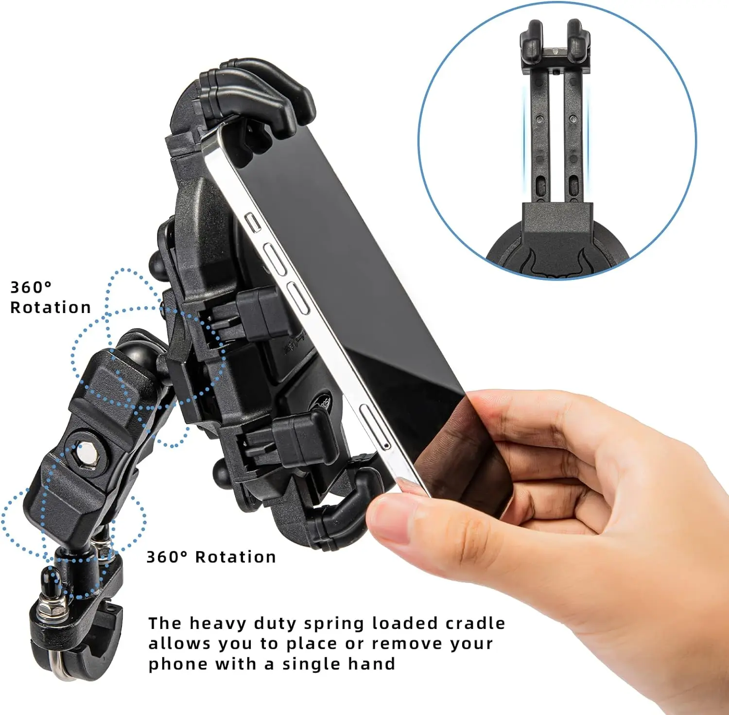 ·【Full Protection&Super Stable】The safest phone mount has to ensure phone’s safety.ROCKBROS bike phone mount features 8 silicone cushions to fix your devices, keep your phone from scratches and vibration, ensuring the safety of your phone under any circumstances, achieve the ultimate stability and security on bumpy roads