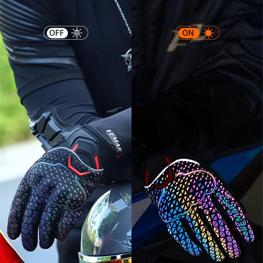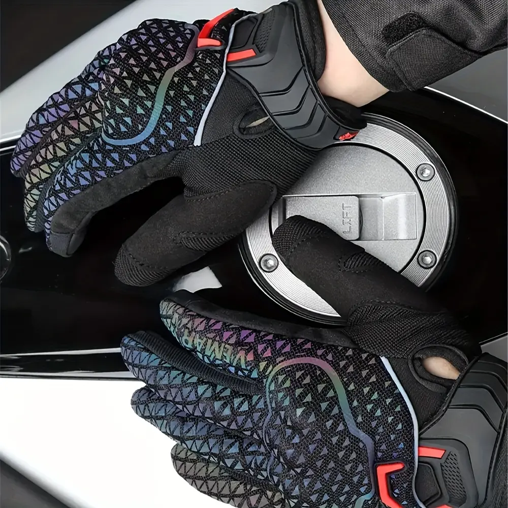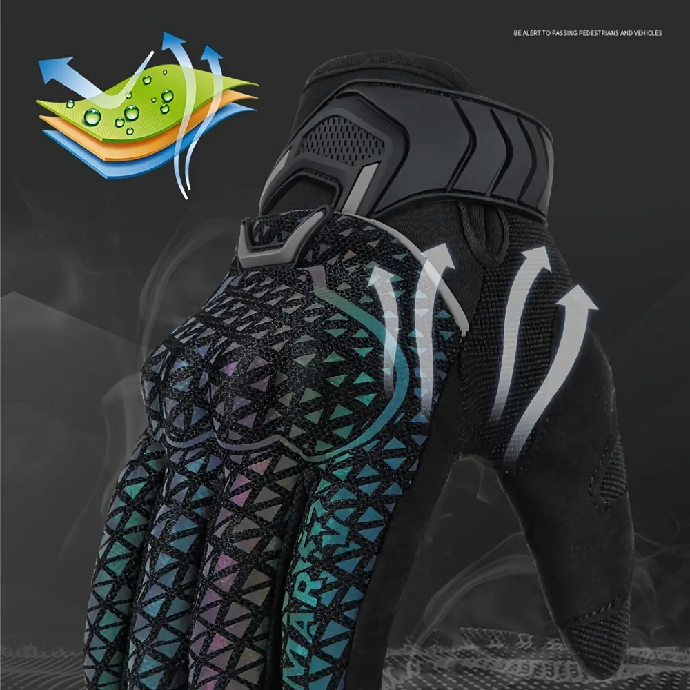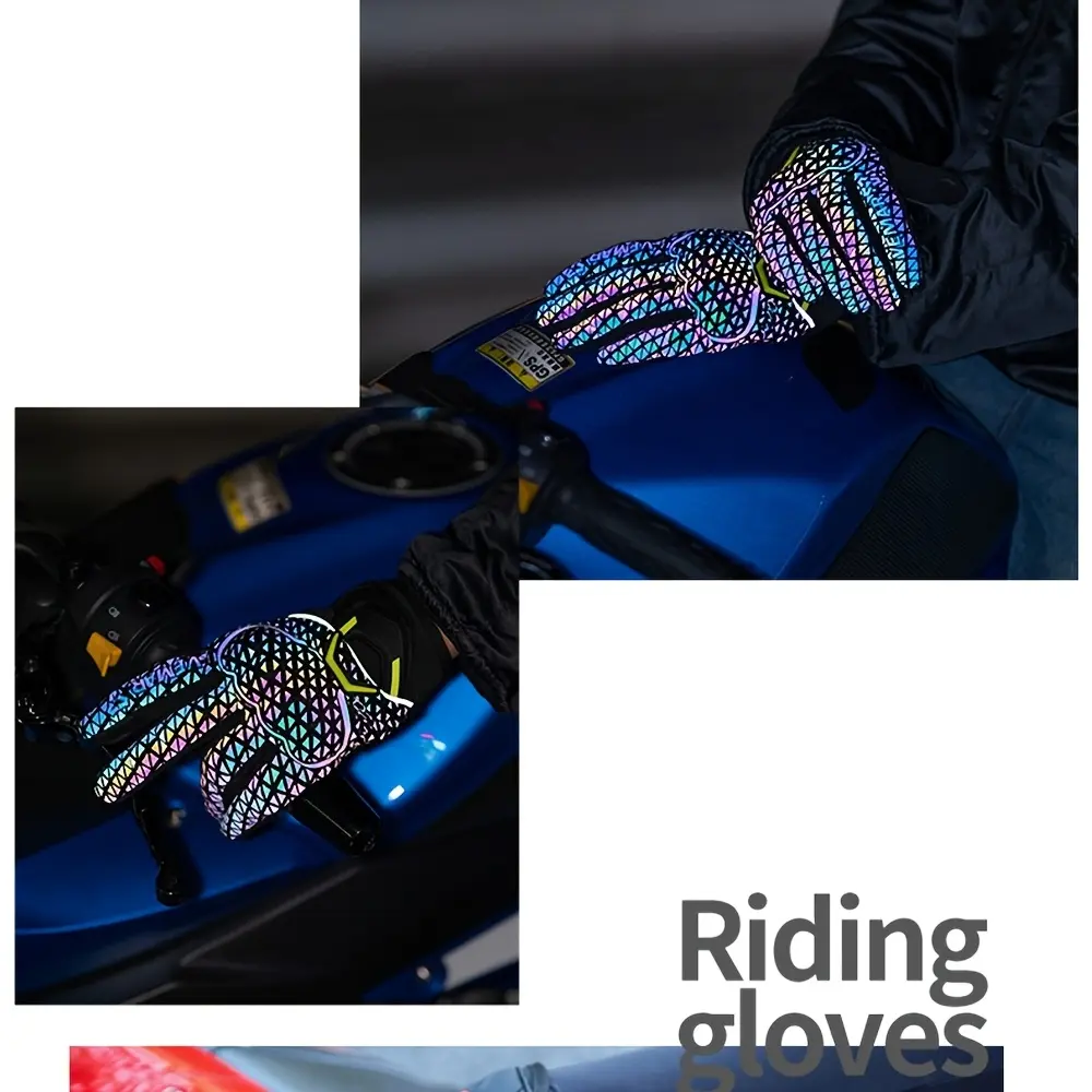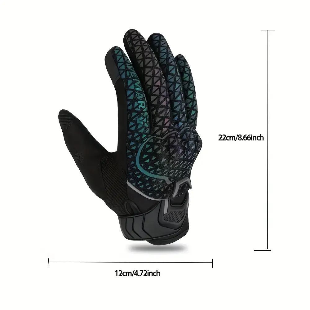 Motorcycle Riding Gloves for & - Touchscreen Compatible, Breathable Night Vision Reflective Gloves with Iridescent Rainbow Colors (/Headlight-Activated), Dirt Bike, ATV, MTB, MBX, Motorbike (Adjustable Strap Closure)