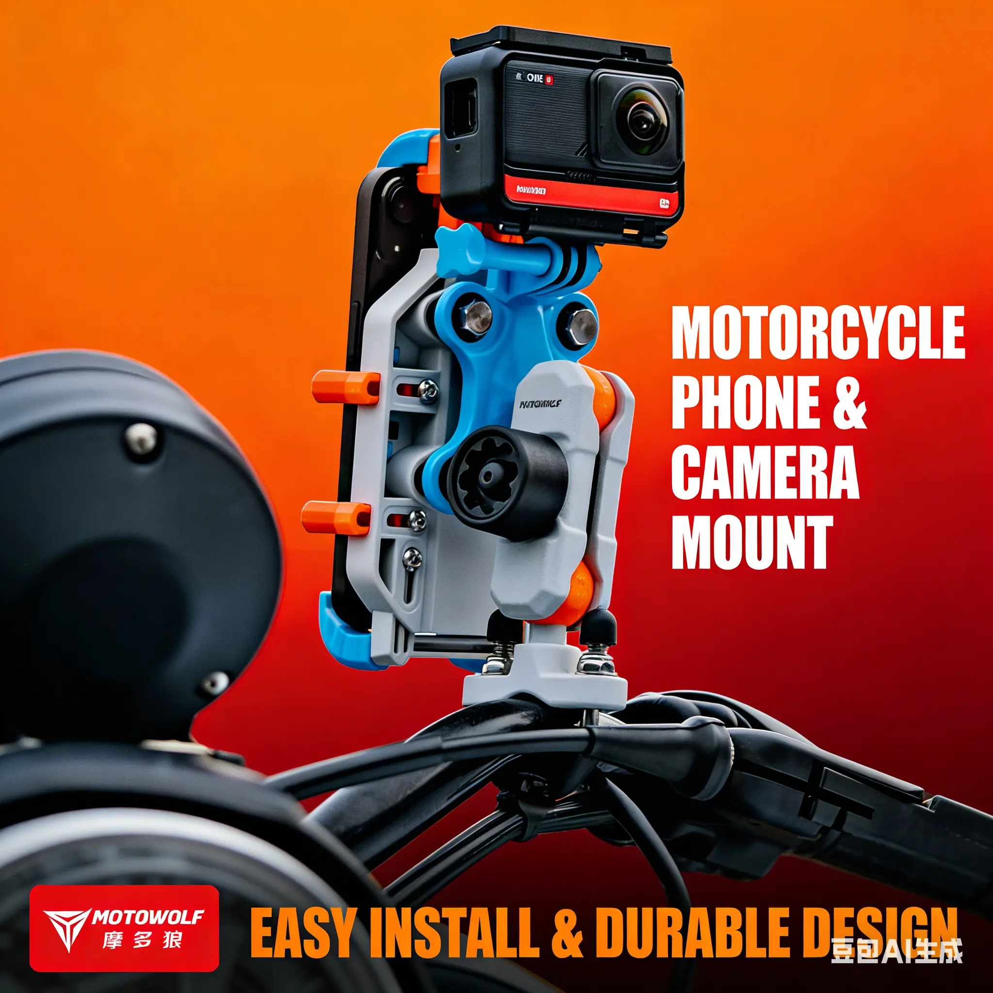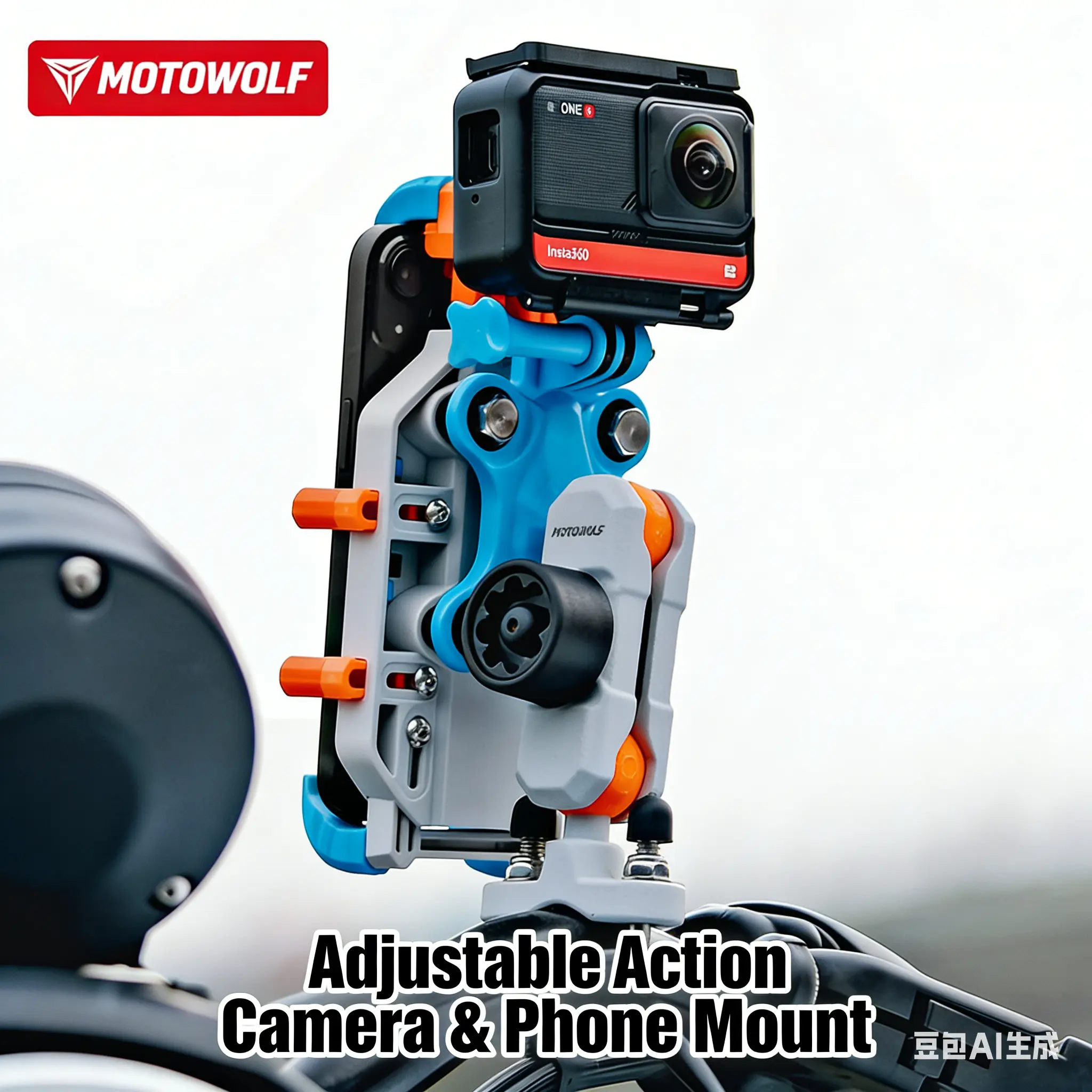 Built-in expansion design: Attach your GoPro, Insta360, or other action cameras to capture every twist and turn of your adventure—2-in-1 mount for phone and camera!