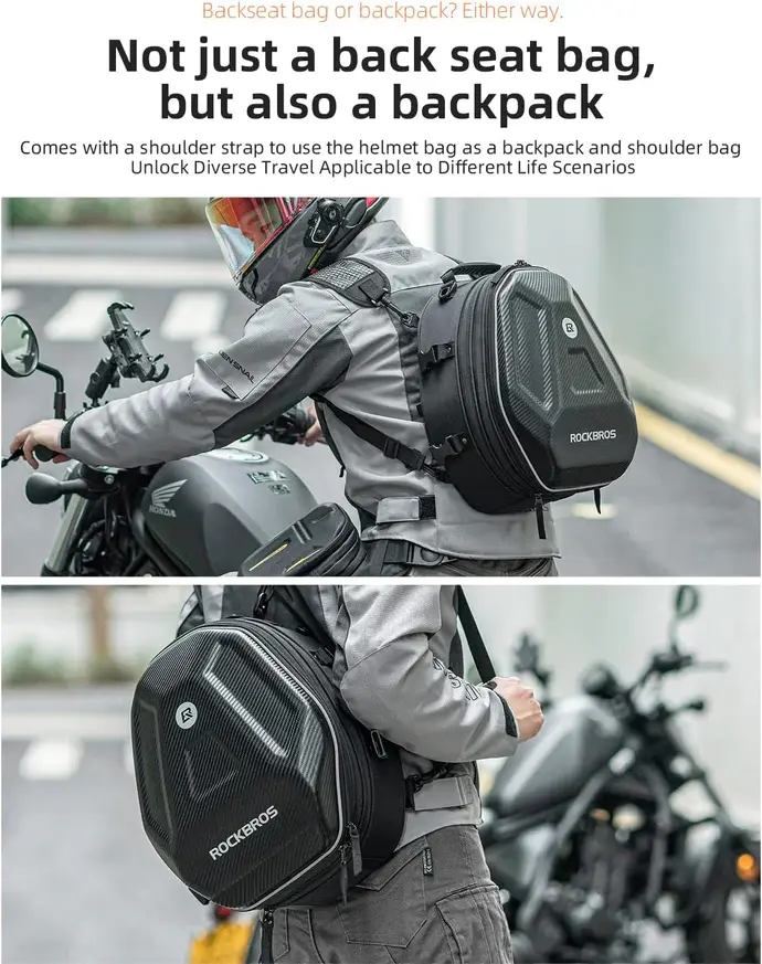·DUAL USE: This motorcycle saddle bag can be connected with the shoulder strap to form a backpack. When riding, you can choose to carry it or install it on the saddle, which is very free. After the ride, you can put it on your back and leave without worrying about losing your belongings.