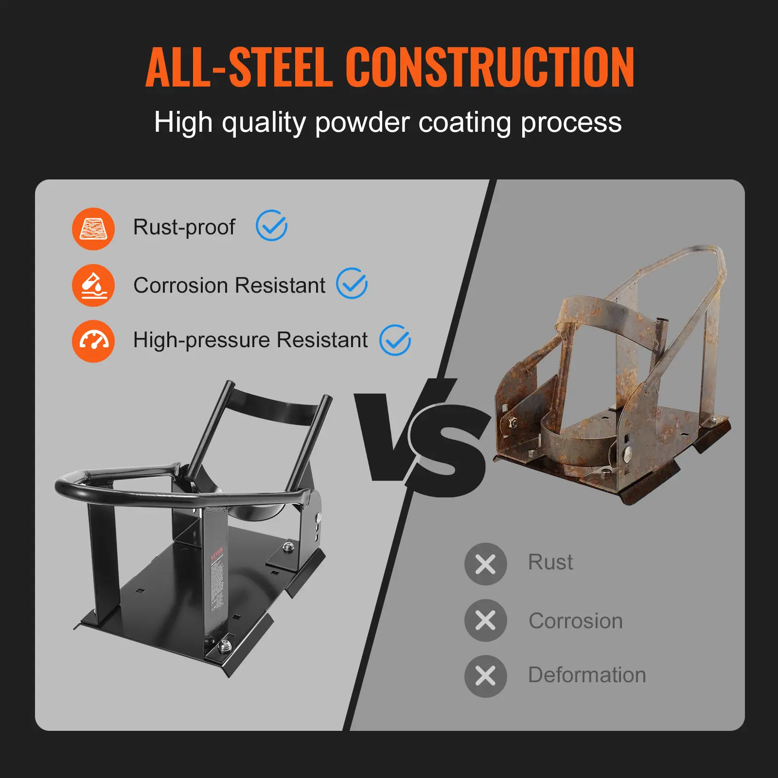 • Heavy-Duty Construction: Designed with a thickened heavy steel structure, the wheel chock boasts 1800 lbs bearing capacity. It can effectively withstand heavy loads and long-term storage without deforming or causing damage to the motorcycle. Additionally, the surface undergoes a high-quality spraying process, providing excellent resistance to rust and corrosion and ensuring long-lasting durability.