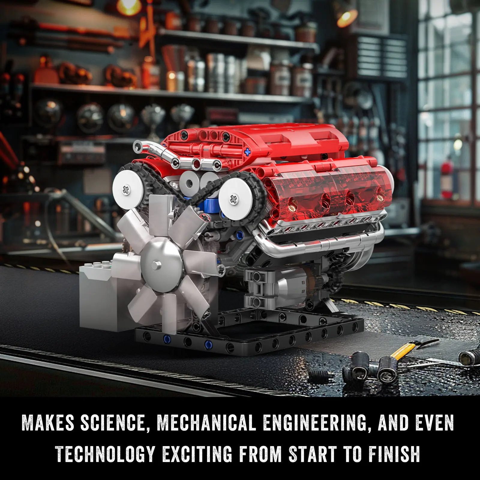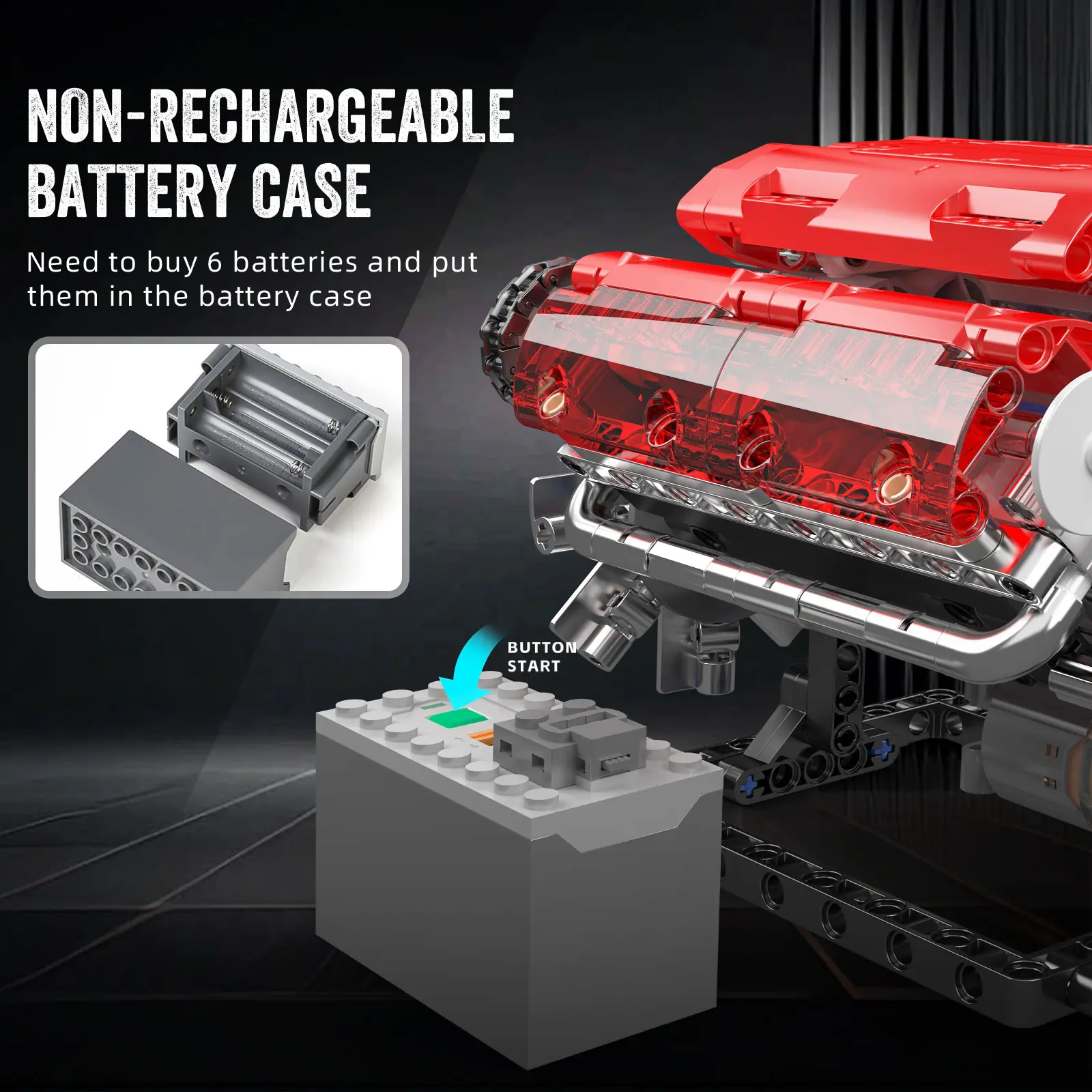 🚀 Mould King 10155 V-type Engine Red Motor Model Building Block