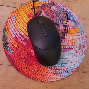 Colorful Disco Ball Pattern Mouse Pad, 1 Count Round Mouse Pad, Non-slip Rubber Base Mouse Pad for Office Home Game Room, Gaming Mouse Pads, Gaming Mousepad, Desk Accessories, Desktop Accessory