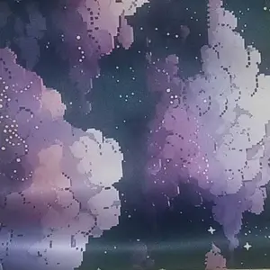 I can see in the picture now, but did not notice before buying, that the image is pixelated. It looks kind of like a video game, which I like, but was not what I expected. That is my fault for not looking closer. This has an extremely strong smell out of the package. I had to air it out.