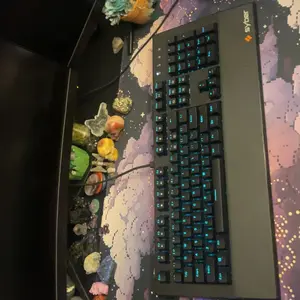 I love the mat it fits on my desk and there’s enough mouse space for games and also fits my keyboard.