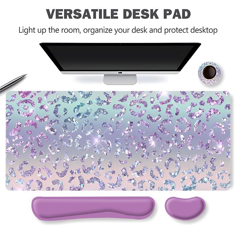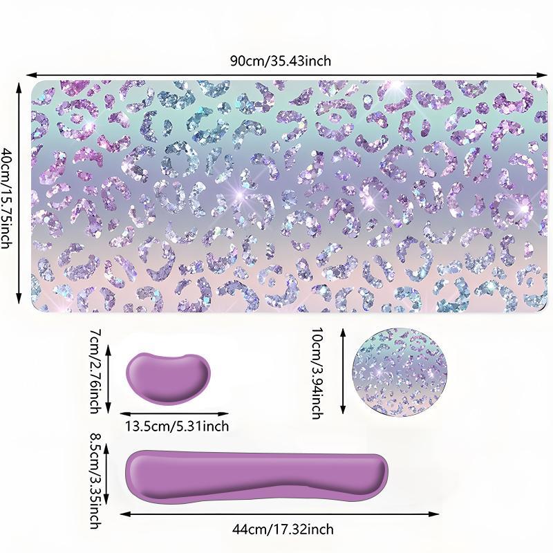 Sparkly Leopard-Print Mouse Pad Set, Mouse Pad & Keyboard Wrist Rest & Coaster, Waterproof Office Accessories Set, Non Slip Mousepad