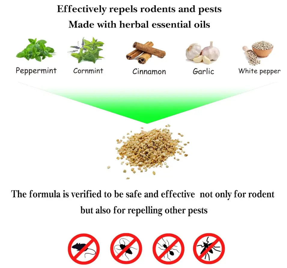 ·Each pouch contains peppermint oil, a natural deterrent that repels mice. Use these pouches to create a rodent-free environment. 🌿