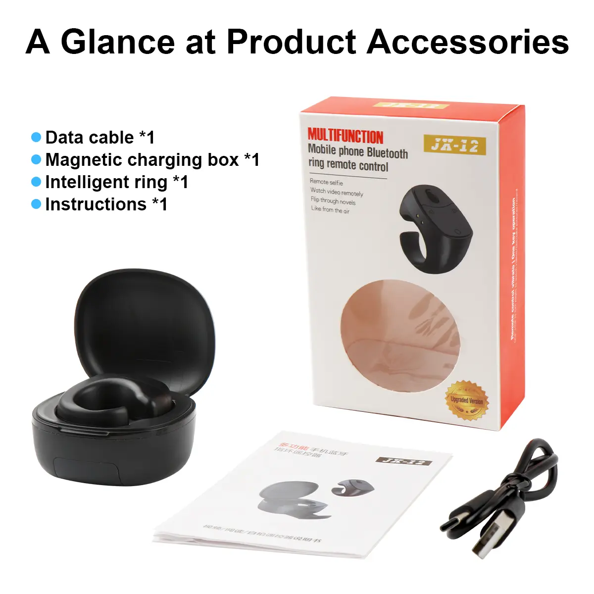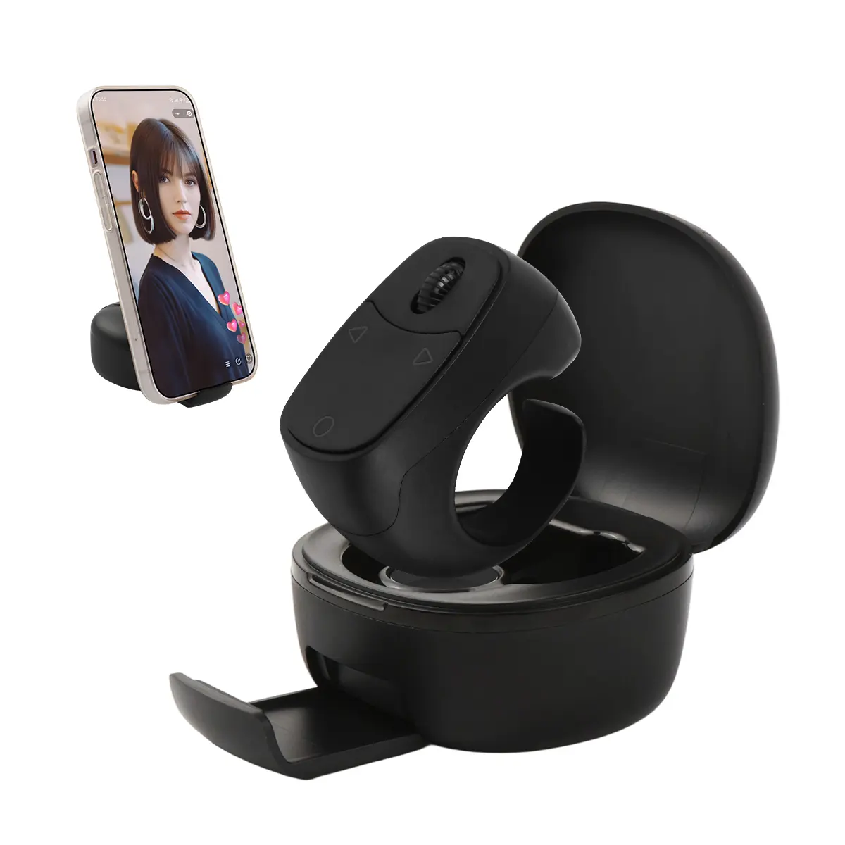 Mouse Ring Bluetooth Remote Control with Phone Stand, E-book Page Turner, Bluetooth Selfie & Video Recording Remote, Music Control, Compatible with iPhone, iPad, Android, Smartphones.