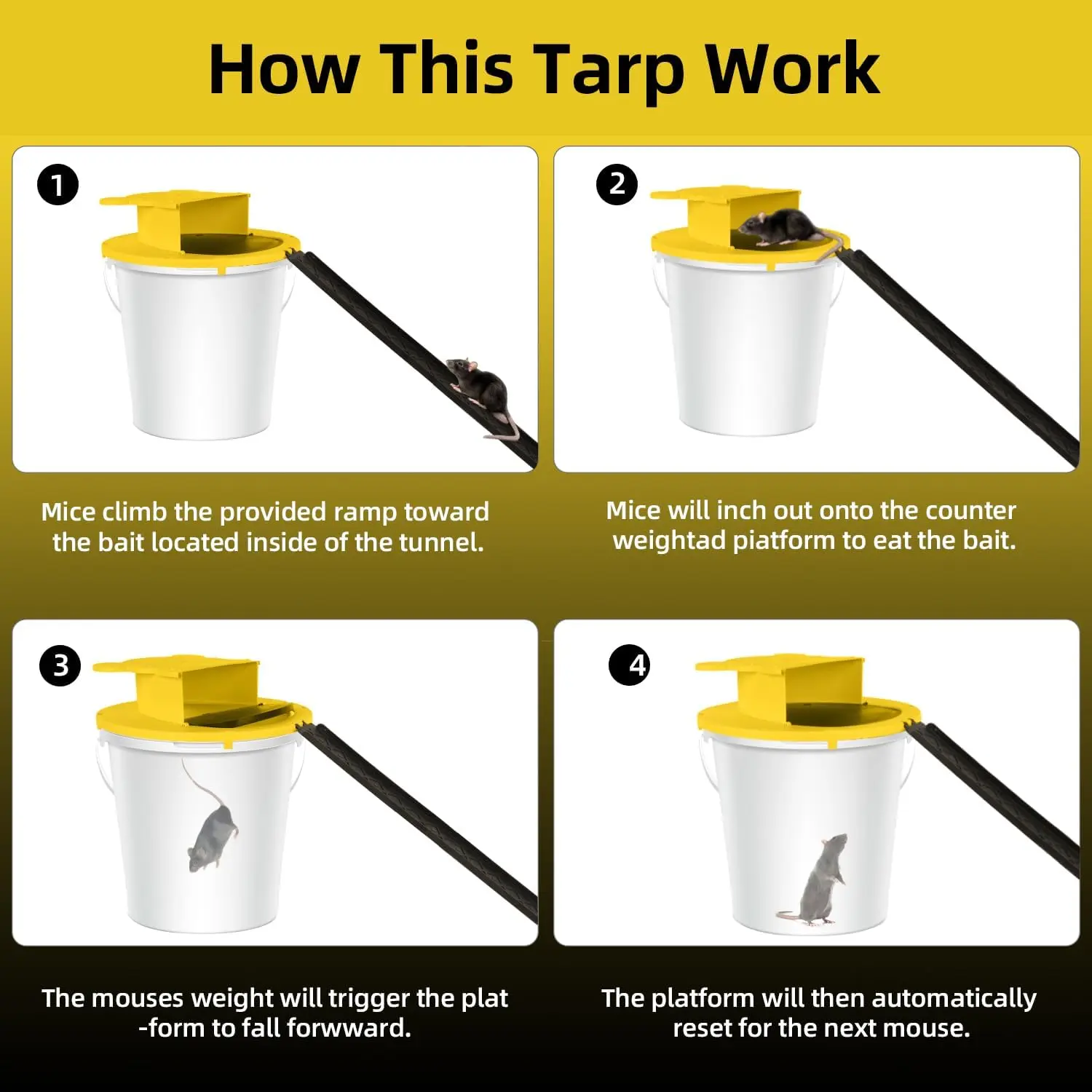 ·Easy To Use: Just clip mouse trap onto a standard-sized 5 gallon bucket and boom your catching mice and rats. It functions without glue or any chemical. Now simply release/dispose of the mice without getting close to the mess. 5 Gallon Bucket is NOT included.