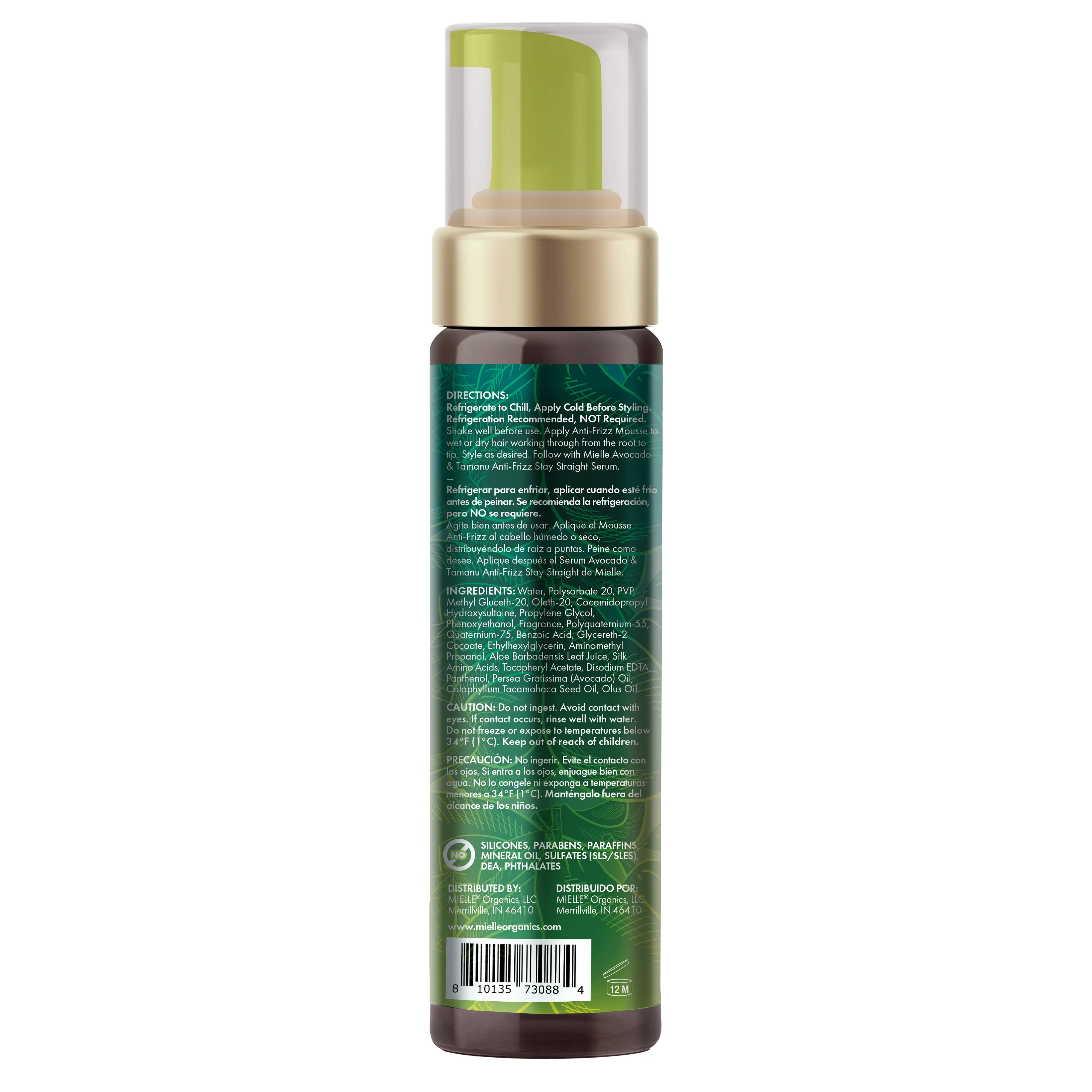 Refrigerate to Chill, Apply Cold Before Styling. Refrigeration Recommended, NOT Required. Shake well before use. Apply Anti-Frizz Mousse to wet or dry hair working through from the root to tip. Style as desired. Follow with Mielle Avocado & Tamanu Anti-Frizz Stay Straight Serum.