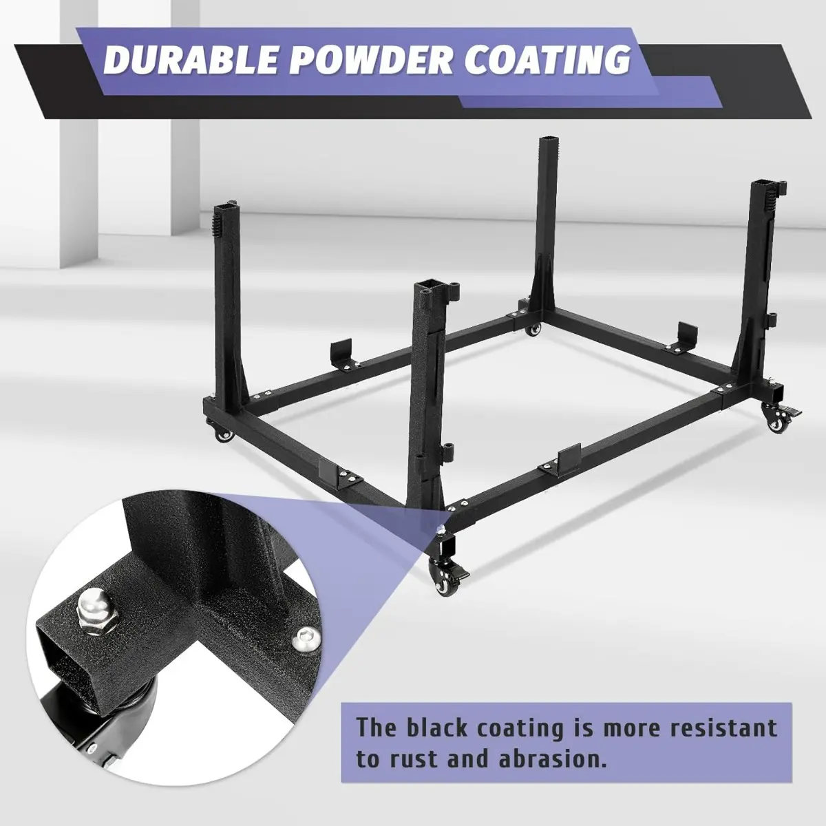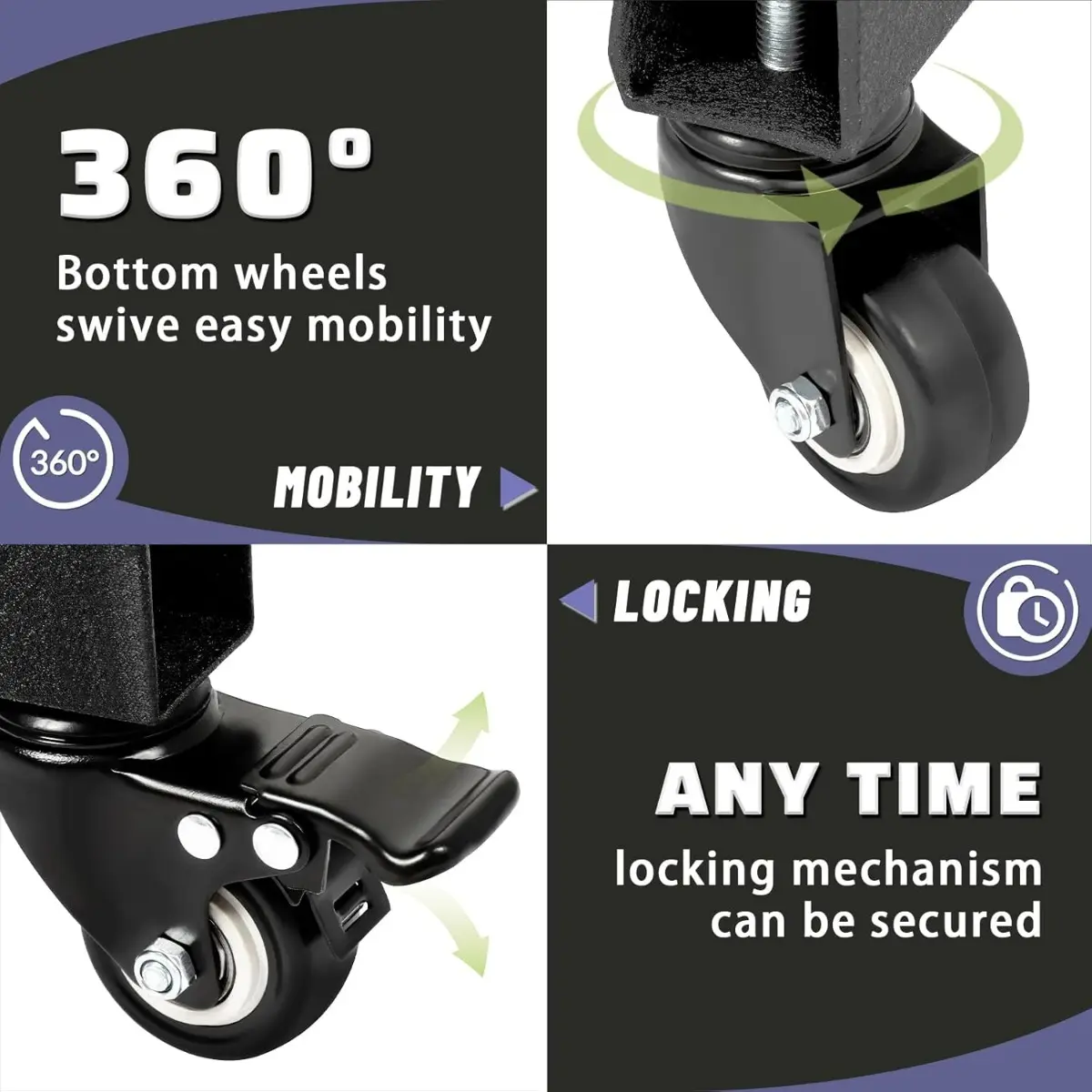 ·Portable design, more mobility: through smooth rotating casters, you can easily move the storage rack to any place in the garage or shop. Four wheels are easy to move and two of them can be locked to ensure stability and prevent unnecessary movement.