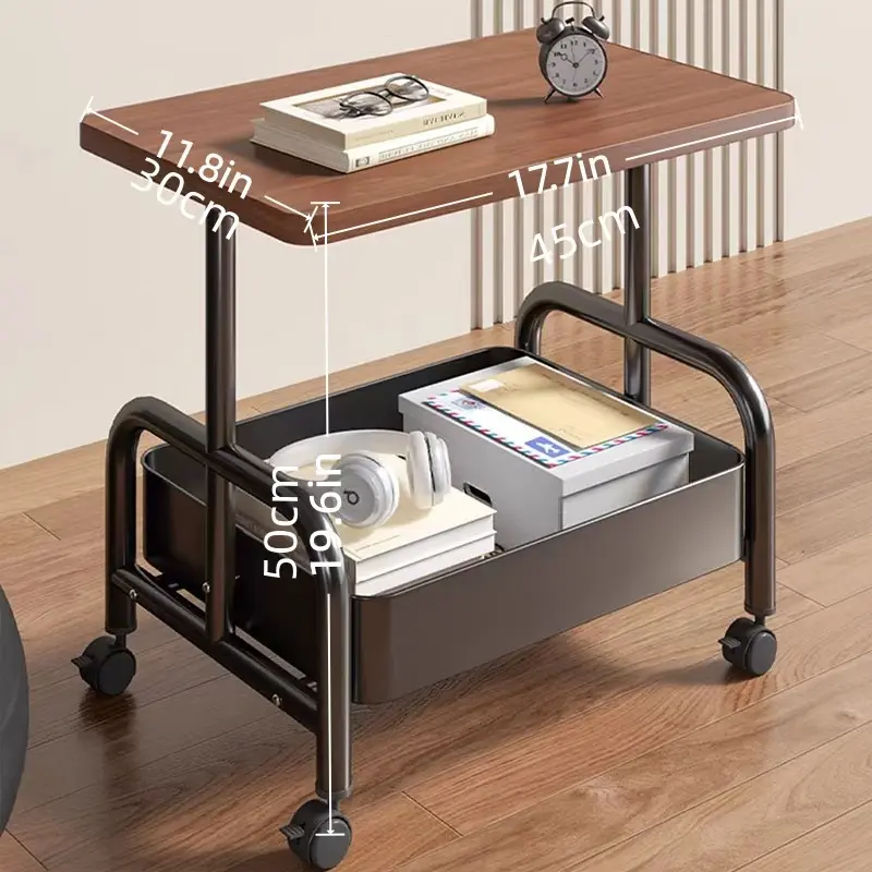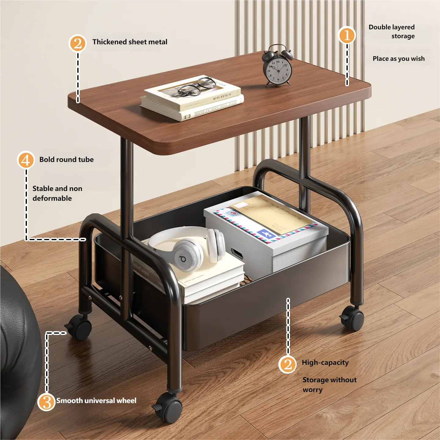Movable Double-layer Tea Trolley/Side Table with Wheels for Living Room Sofa Storage, Bedroom Shelf, and Small Table