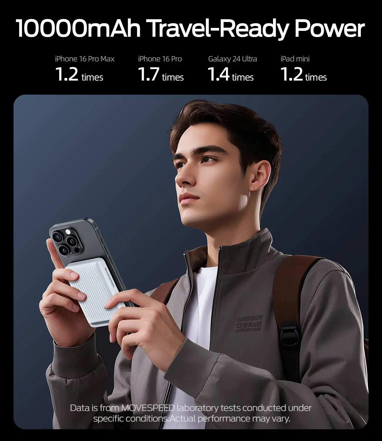 ·Power Up on the Go with 15W Ultra-Fast Charging:Life moves fast, and so should your charging. With 15W ultra-fast charging, this battery pack is perfect for busy days when you need a quick recharge. Whether you're catching up on work calls, navigating with GPS, or streaming your favorite shows, this charger delivers the power you need—quickly and efficiently.