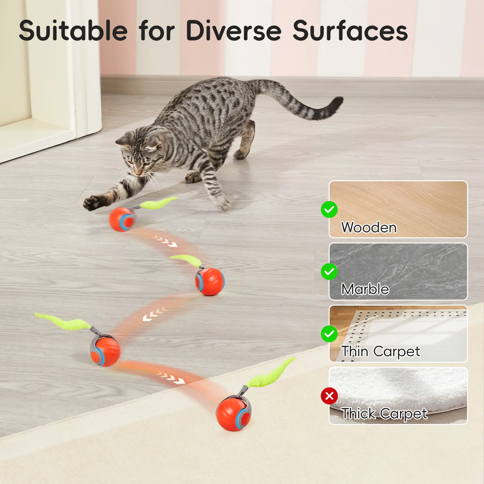 Detachable Plush Tail for Hunting Play ā The toy comes with a removable feather-inspired tail, enhancing your cat's hunting instincts and providing a fun element to the moving ball. Great for stimulating their natural desire to chase.