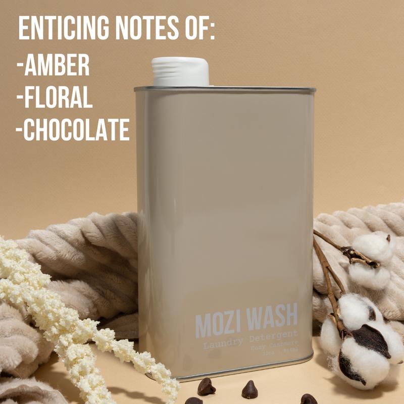 Mozi Wash Laundry Detergent 1 Pack  - World's Best Smelling - Plant Based Household Scented Cleaning Display Worthy Eco Friendly Tins Non Toxic Formula Cozy Cashmere Sugar Dew Desert Poppy Alpine Woods Central Coast  Vanilla Moon Infinitely Recyclable