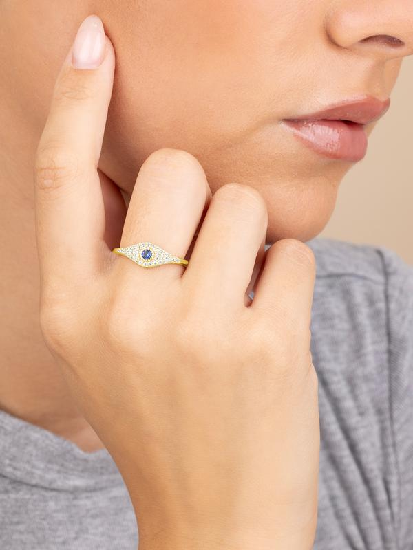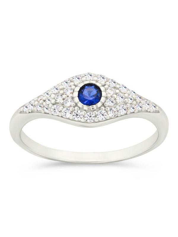 Ward off bad vibes with this Sterling Silver Mozzie Evil Eye Ring. Made with genuine sterling silver, this ring features a symbolic evil eye design that adds a touch of protection to your style. Perfect for those who like to keep it light and quirky (not to mention trendy!).