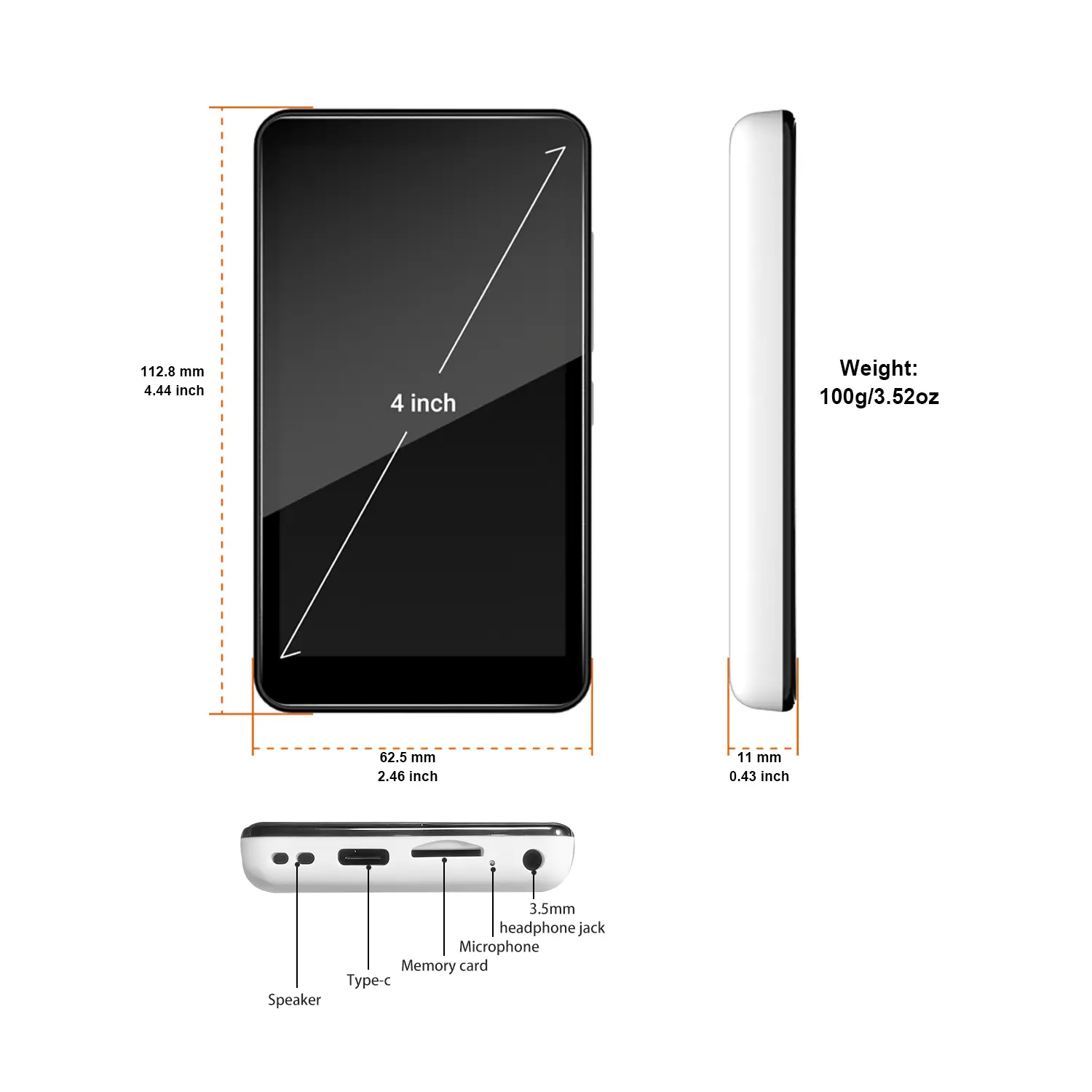 ·【8H Playback & 4" Touchscreen】Designed for life on-the-go, the dgtenk MP4 player features a slim, lightweight body with a responsive 4-inch touchscreen that fits perfectly in your hand and pocket. Enjoy up to 8 hours of audio playback and quickly power up via the modern USB-C port. It's the ideal portable music player for travel, school, or daily commutes.