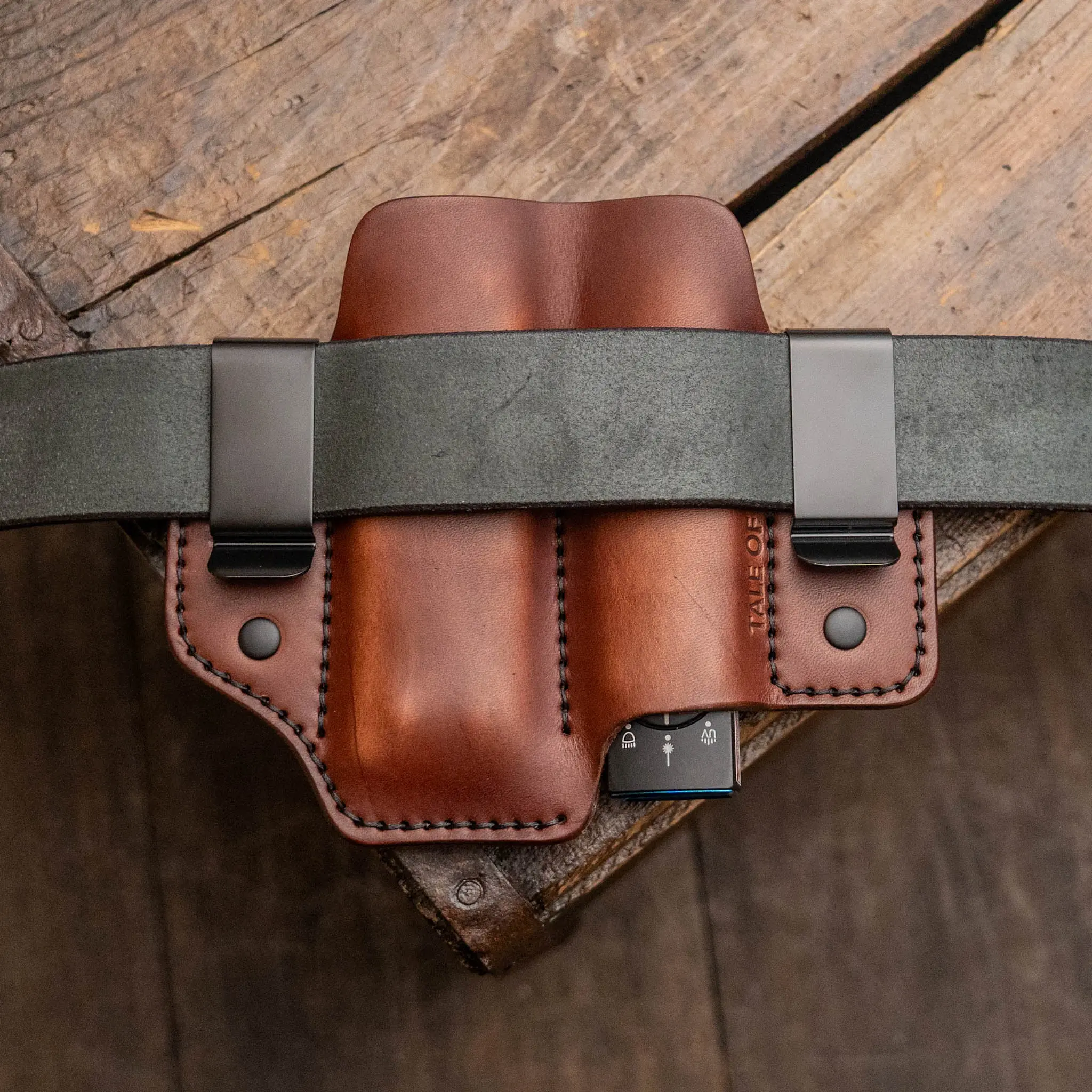· Sizing Double clip and belt loops fit a 1.5 inch belt.